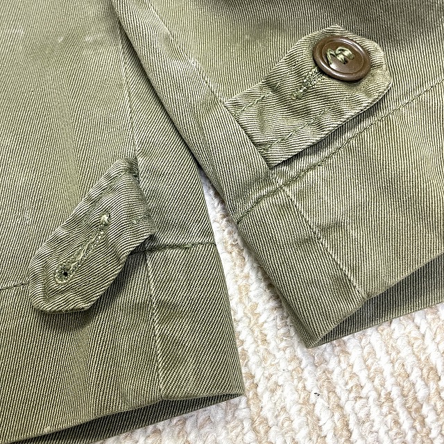 前左ポケット下部にリペアがあり、左裾のボタンが欠損している箇所がございます。