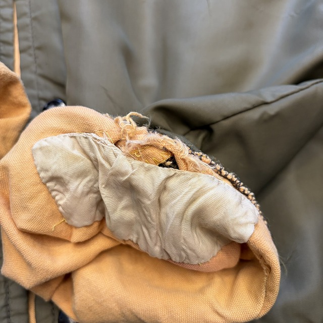 - 襟元、袖先、裾先にダメージや、リペアがみられます。その他、ステッチ抜け、薄汚れ、小穴等の年代相応の着用感がみられ、ユーズド慣れされた方におすすめの商品です。