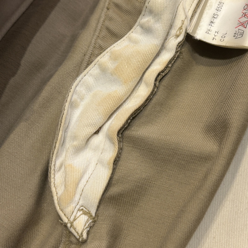 - 元々ユーズド、カットオフの加工が施されております。画像の様に裏地に汚れがございます。その他に目立つ汚れやダメージ等は無く、古着慣れされた方におすすめです。