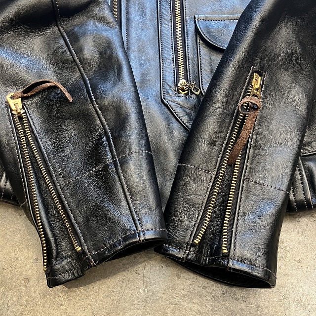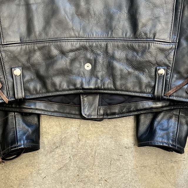 - 袖先、裾先に若干のレザー特有のスレや小傷がみられる箇所がございます。その他、着用感はございますが、まだまだ問題なく着用していただけます。