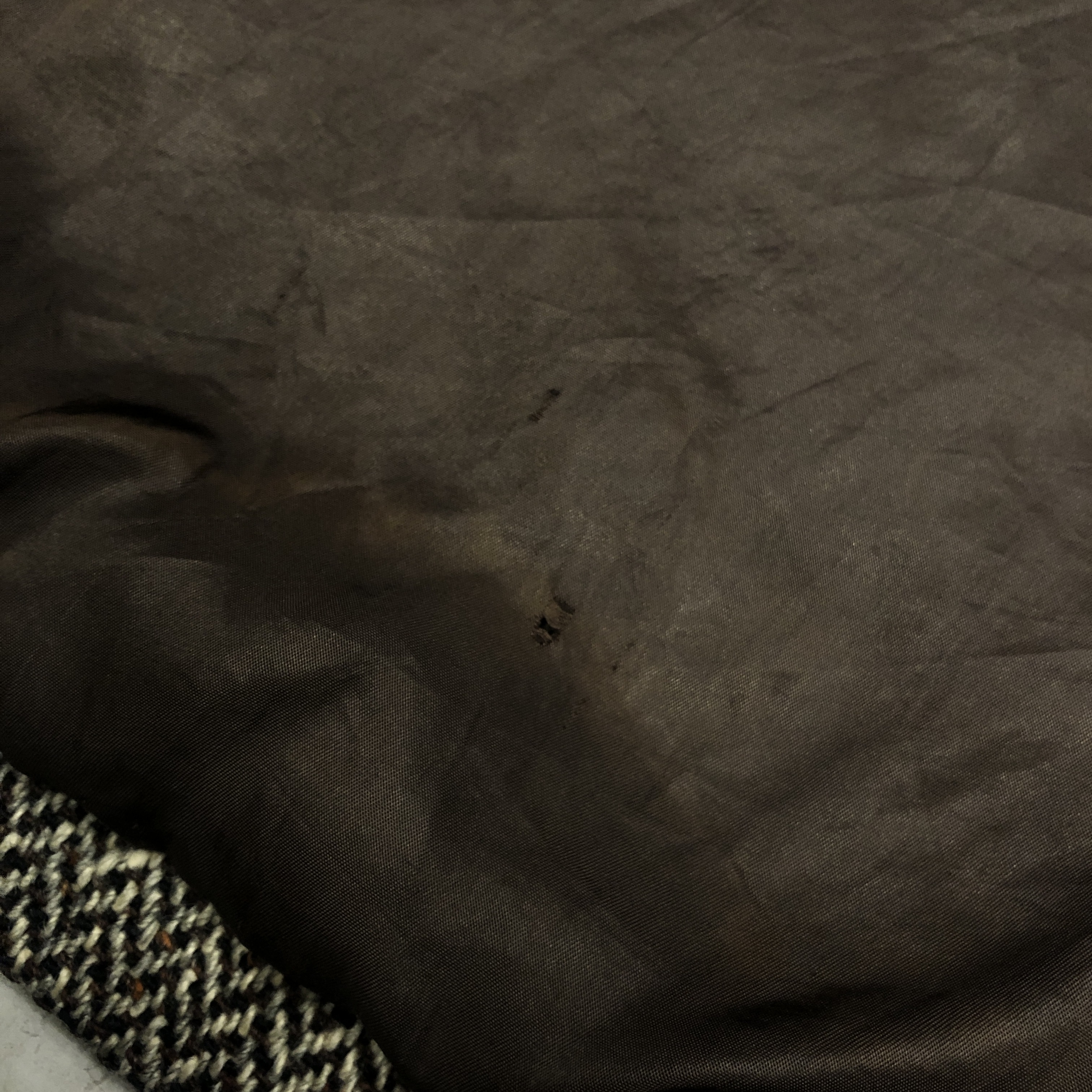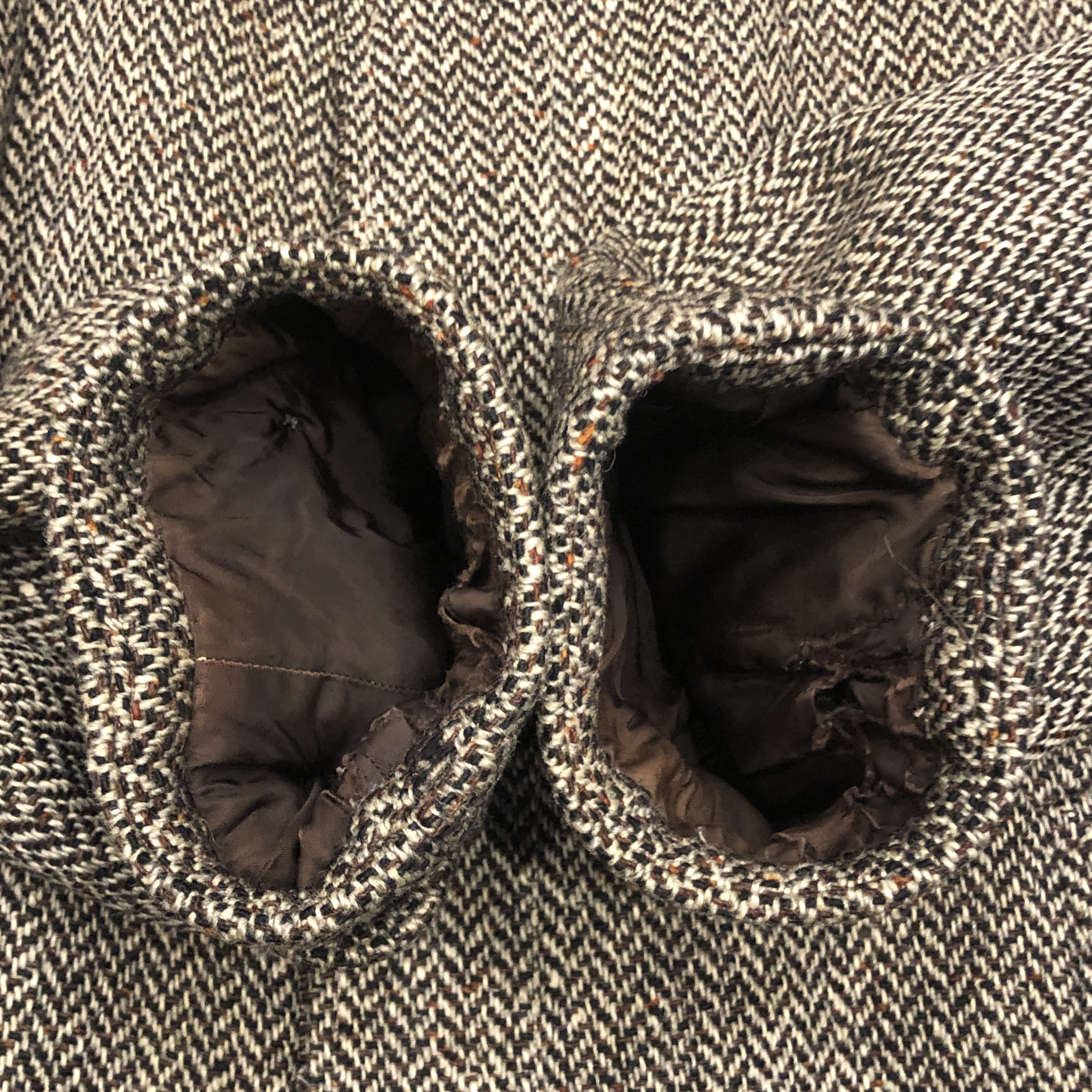 - 年代相応の着用感、内側裾部分と袖口、襟元、ポケット、ボタンホール上から4つに画像の様なダメージがそれぞれございますが、ヴィンテージ慣れされている方でしたら問題なくお使いいただける範囲です。