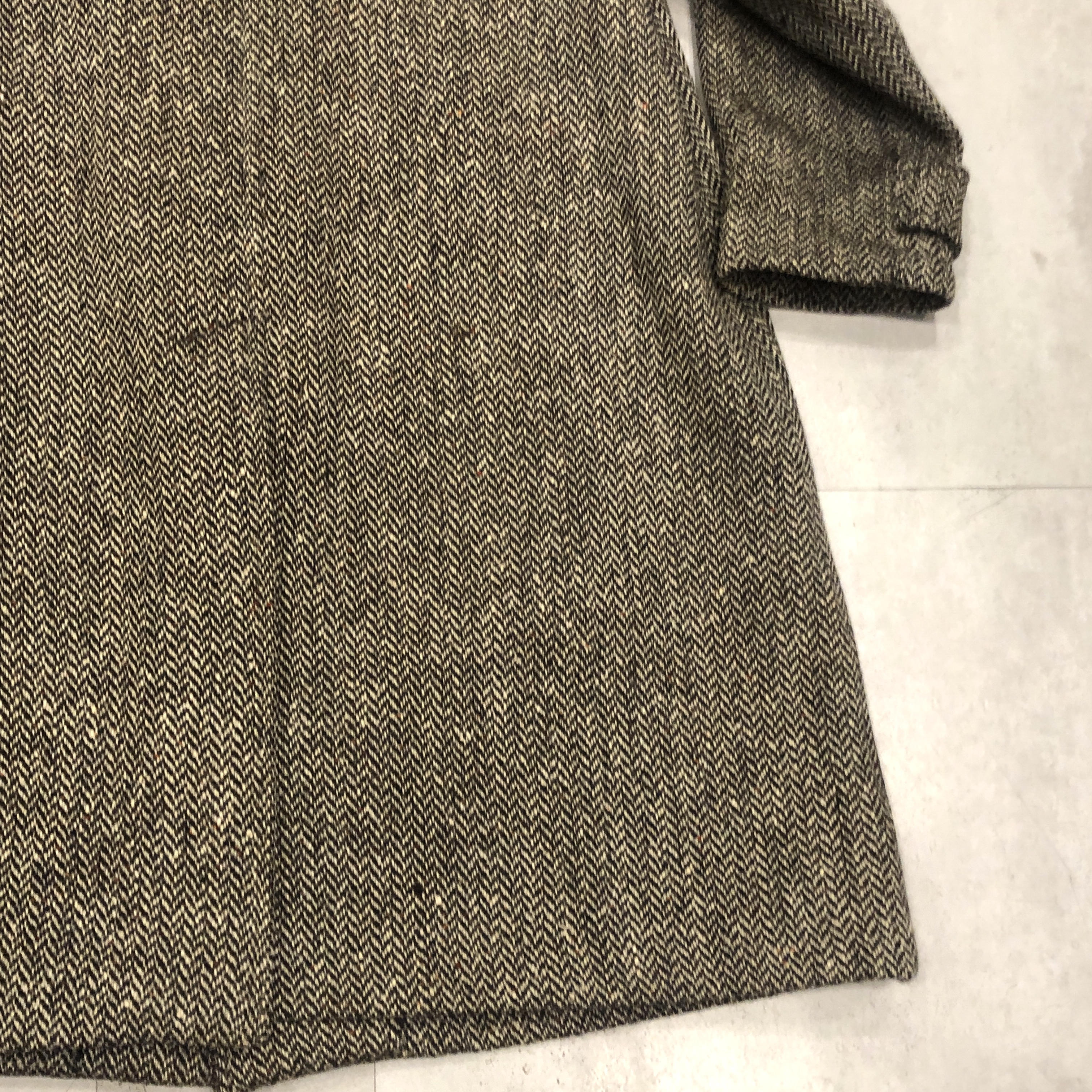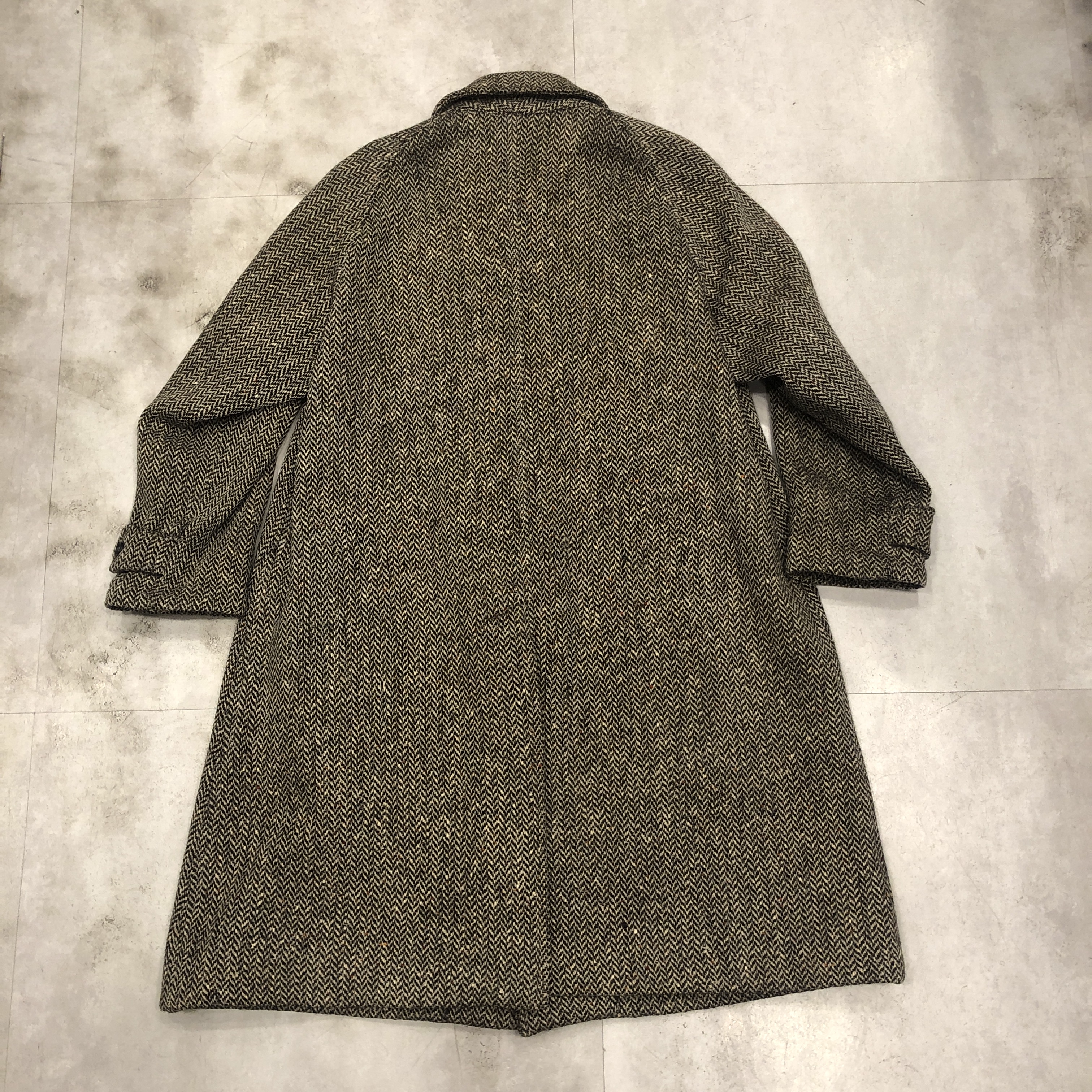 - 英国伝統のクラフツマンシップが息づく Burberrys のバルマカーンコート。本個体は希少な IRISH TWEED を贅沢に使用した一着です。アイルランド産ツイード特有の素朴で力強い織りと深みのある色調は、雨風に強く長年の着用に耐える耐久性を備え、クラシックコートに相応しい風格を漂わせています。