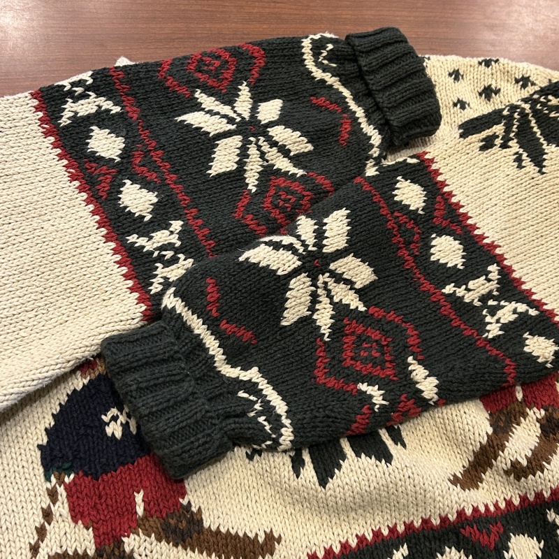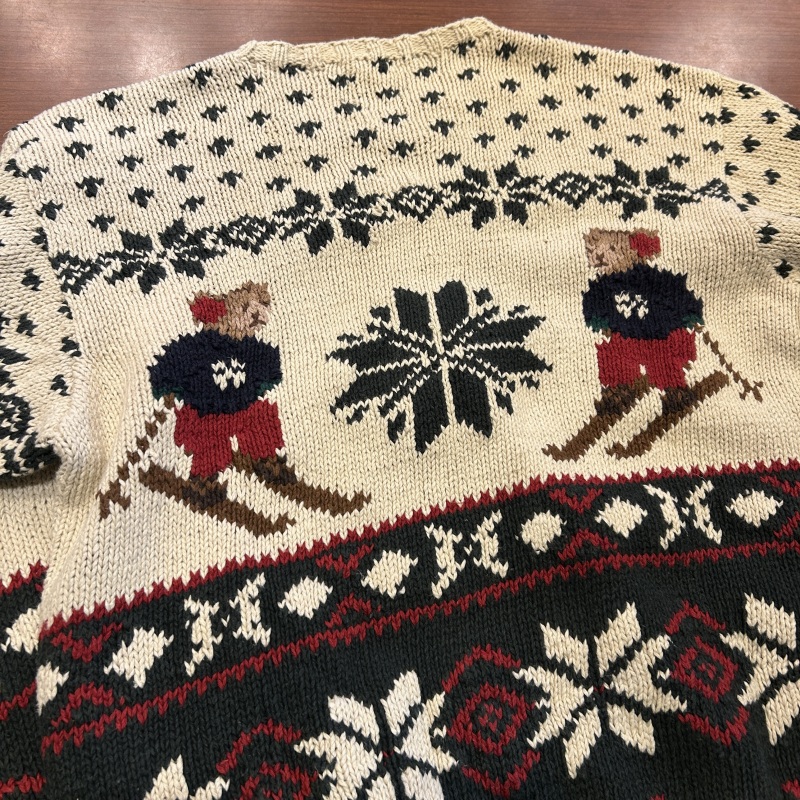 - ニット特有の糸の飛び出しや毛羽立ちがございますが、目立つダメージ等は無くまだまだ問題無く着用していただける状態です。