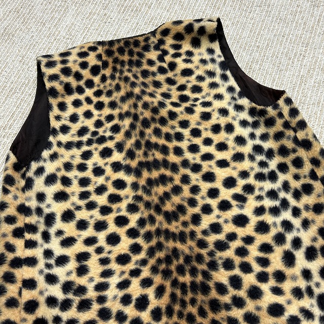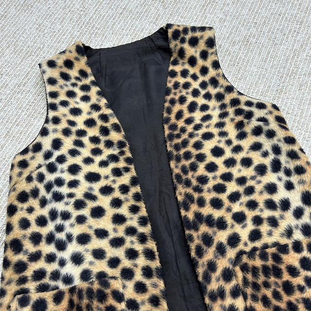 チーター柄のフェイクファーベスト。