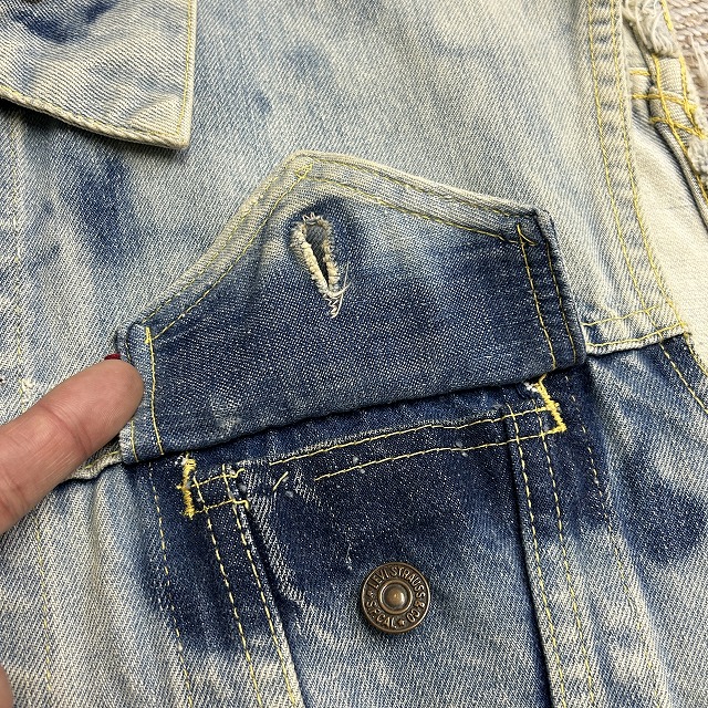 ボタン裏刻印『D』、均等V、胸ポケットフラップ裏 ライトオンスデニム、