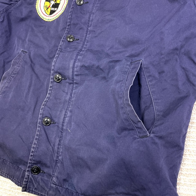 - 画像のように、汚れ、スレ、小傷、色褪せがあり、袖にワッペンを外したような跡がございます。