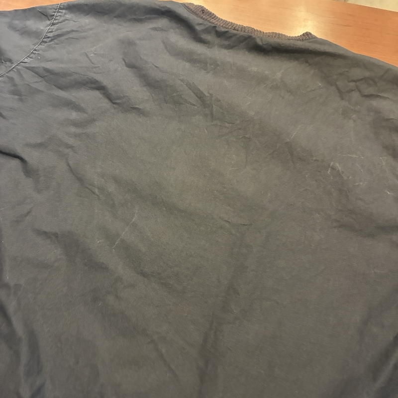 - 多少のアタリや色褪せ、リブ部分に擦れや伸び、襟に一部画像の様なダメージと中綿の抜け等が見られます。