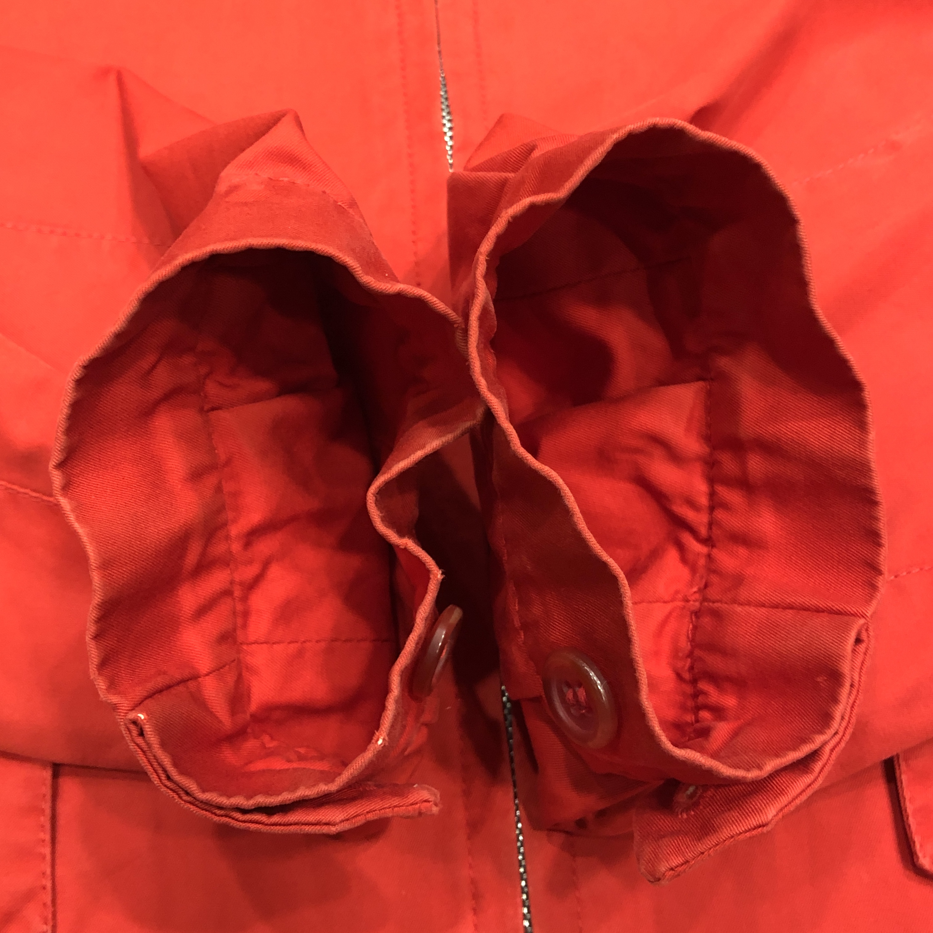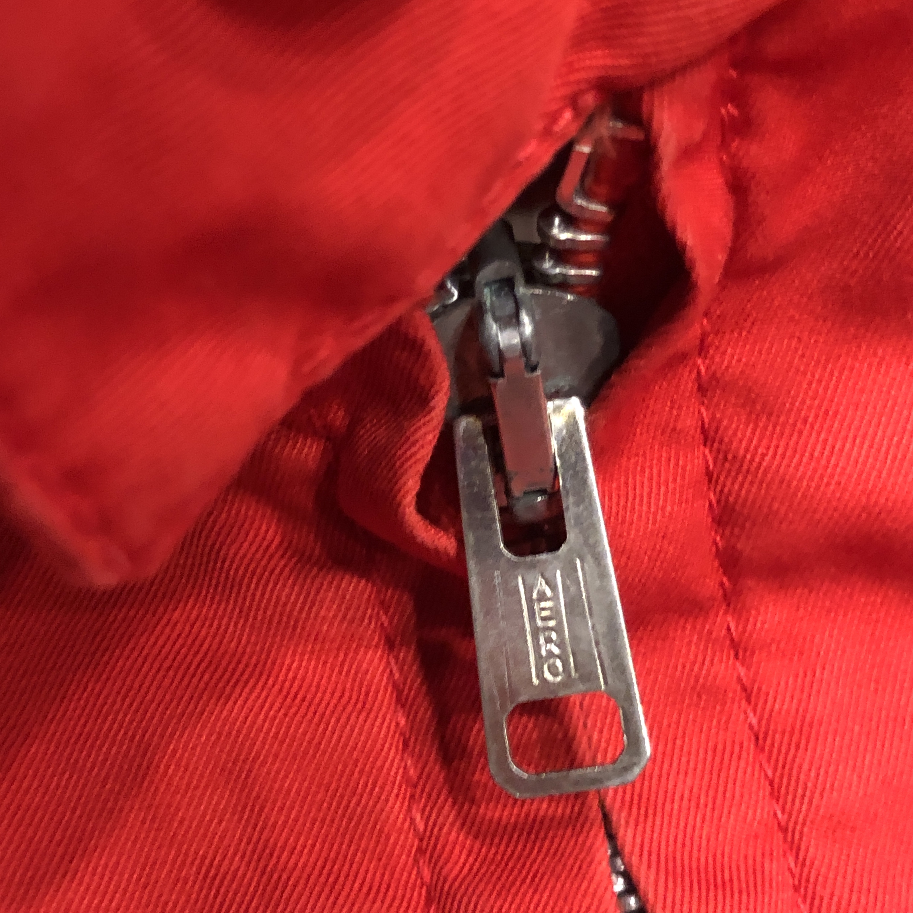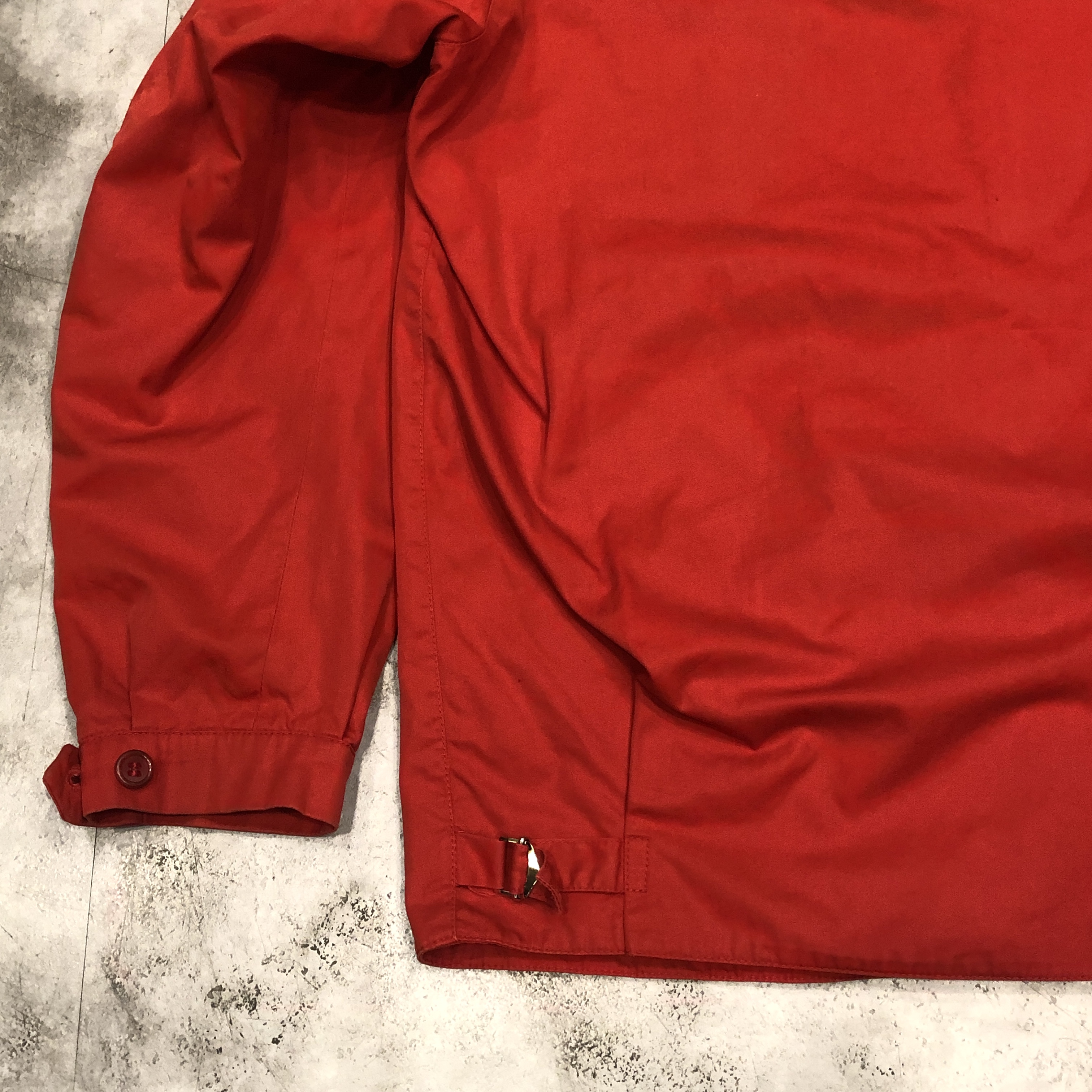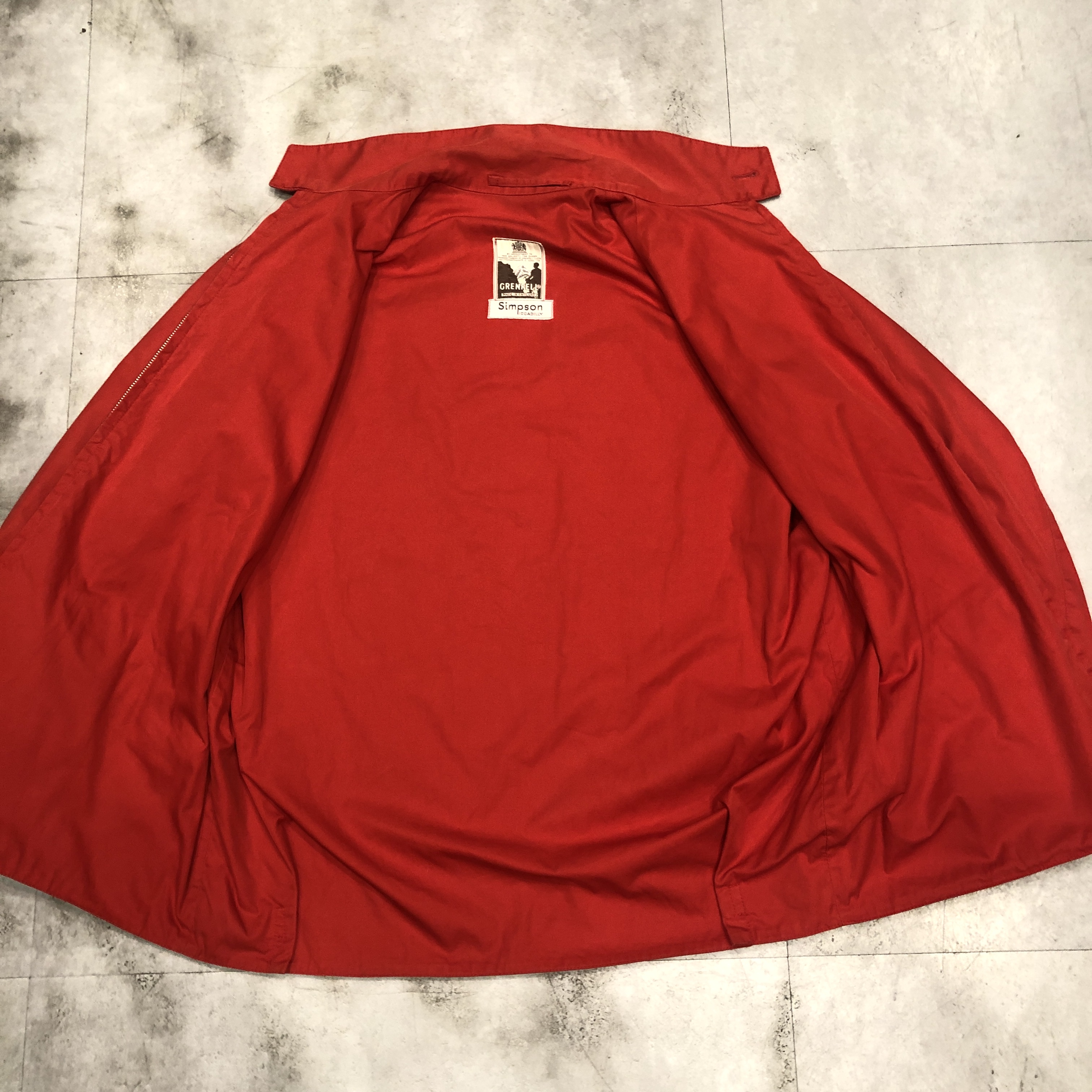 この時代のグレンフェルらしい、ミニマルかつ実用性重視のディテール。大ぶりのラグランスリーブやスラントポケット、すっきりとしたフロントジッパー(AERO社製)、袖口や裾のボタン仕様まで、シンプルながらも着る人の動きを妨げない設計が光ります。裏地まで全てコットンで統一されているのもヴィンテージならでは。タグのデザインや縫製からも、この時代特有の手仕事の温もりが感じられます。