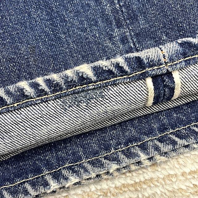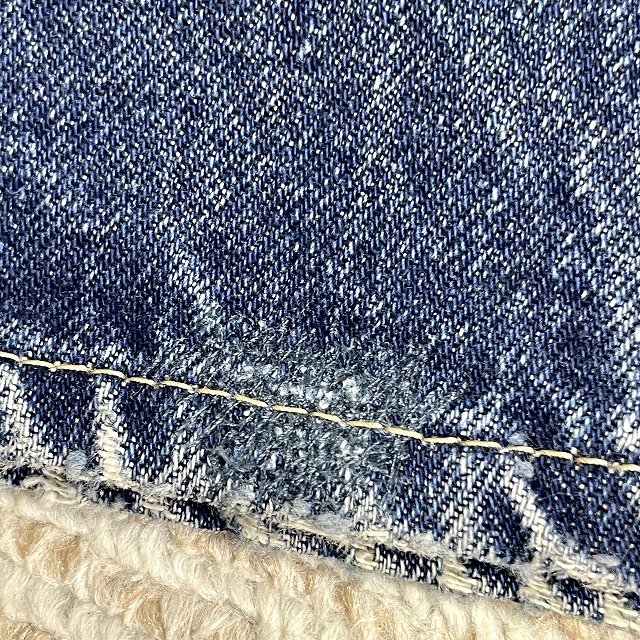 右ヒップポケット付け根にキズがあり、裾にリペアがございます。