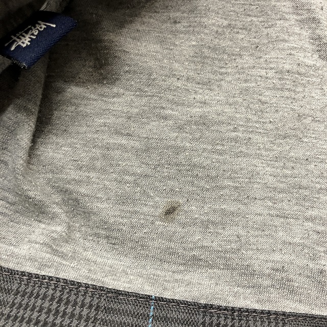 - 画像の様なタグの剥がれがみられます。また、背面や、内側に小さな薄汚れがみられます。その他、内側コットン面や、袖リブに毛羽立ち等の着用感ございますが、まだまだ問題なく着用していただけます。