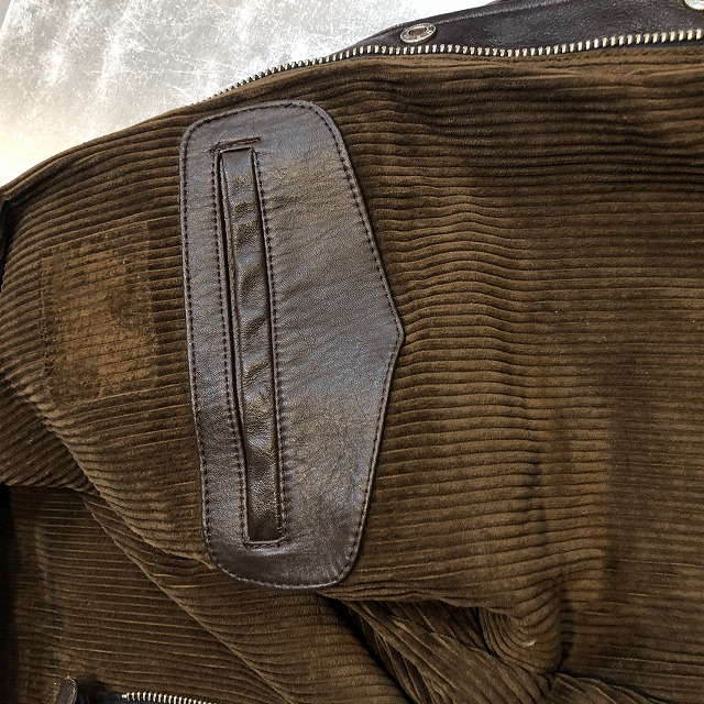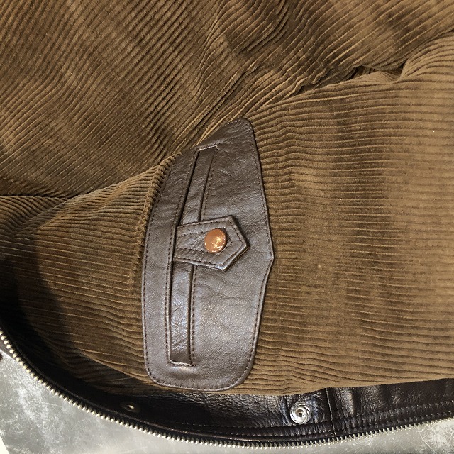 ボタンはスタップで、ボタンのカラーもブラウンなのがポイント。