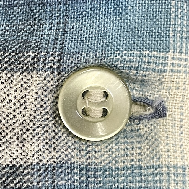 ボタンループの片側が取れており、ボタンホールにホツレがございます。