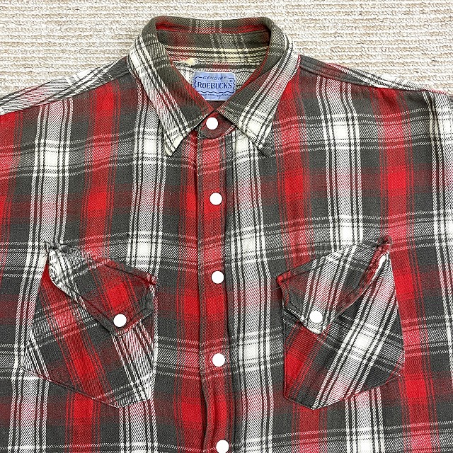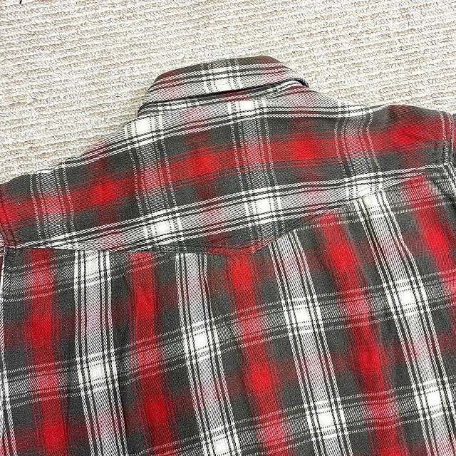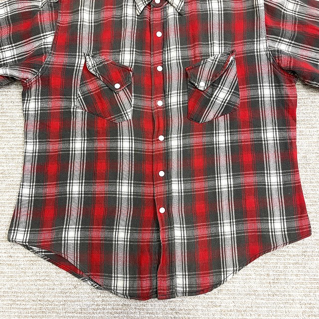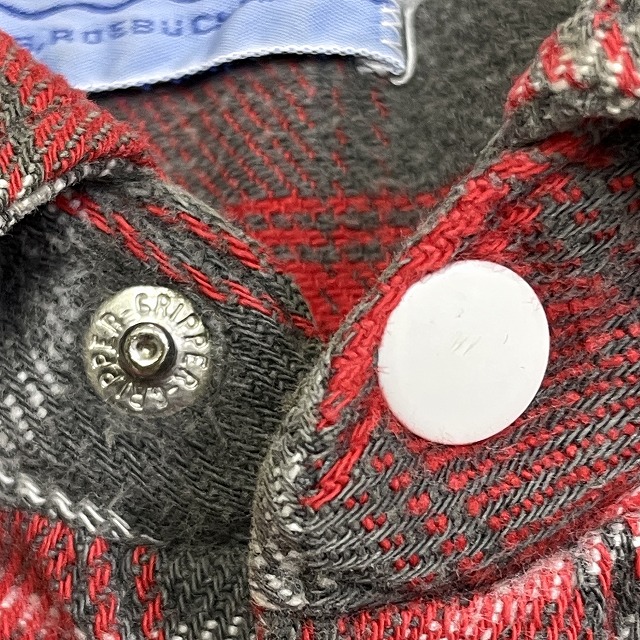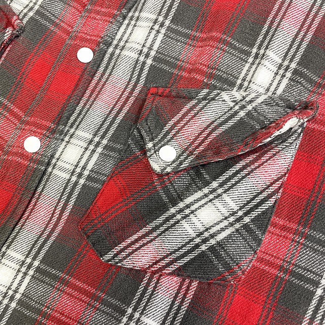「レッド×グレー×ホワイト、跳ね上げポケット、フルスナップ」