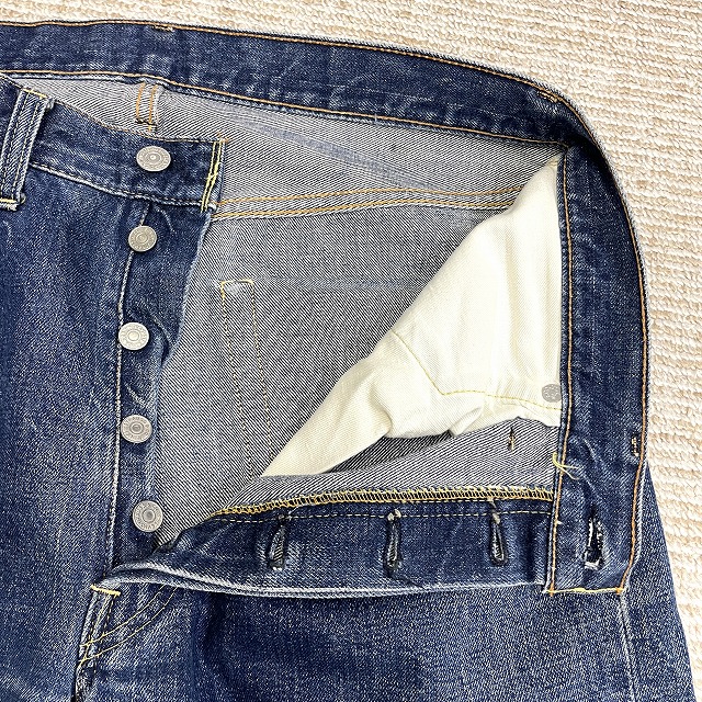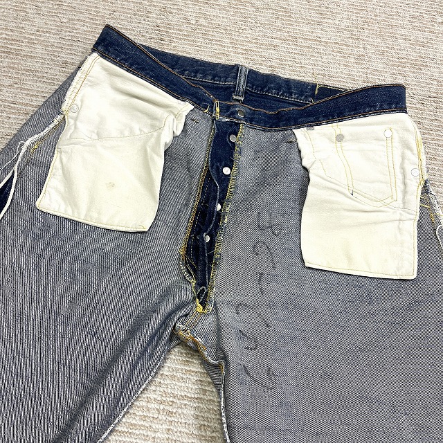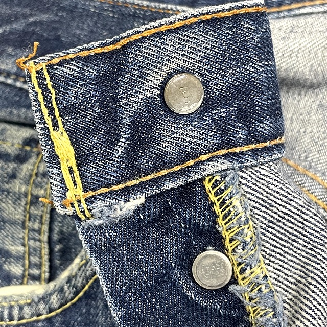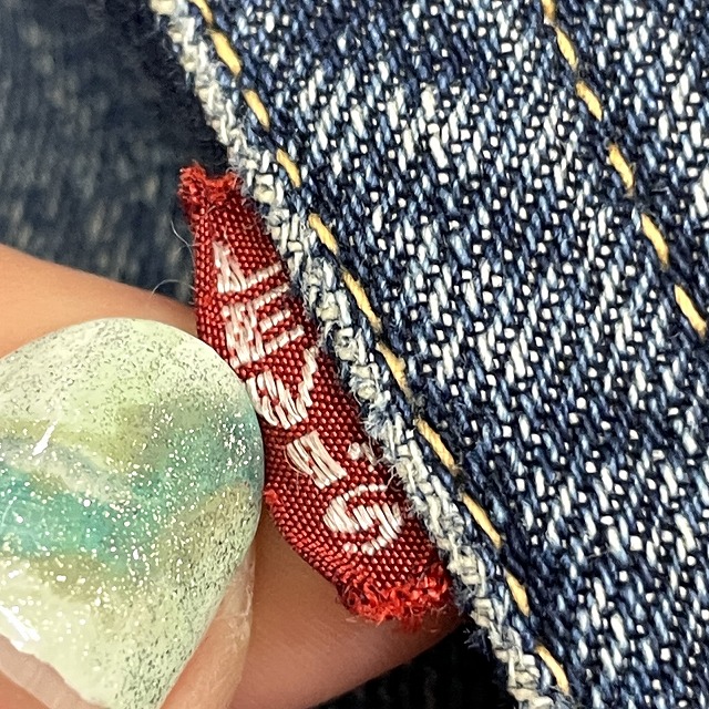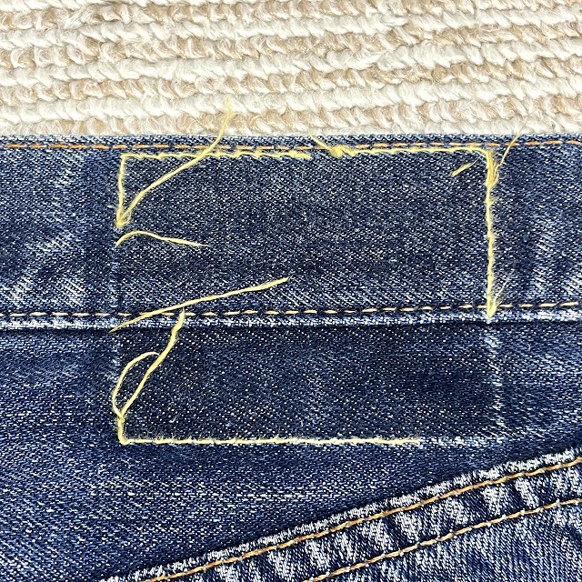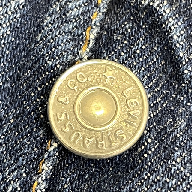 - トップボタン裏刻印『6』、不均等V、平行ステッチ