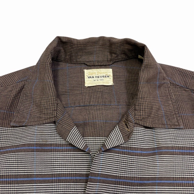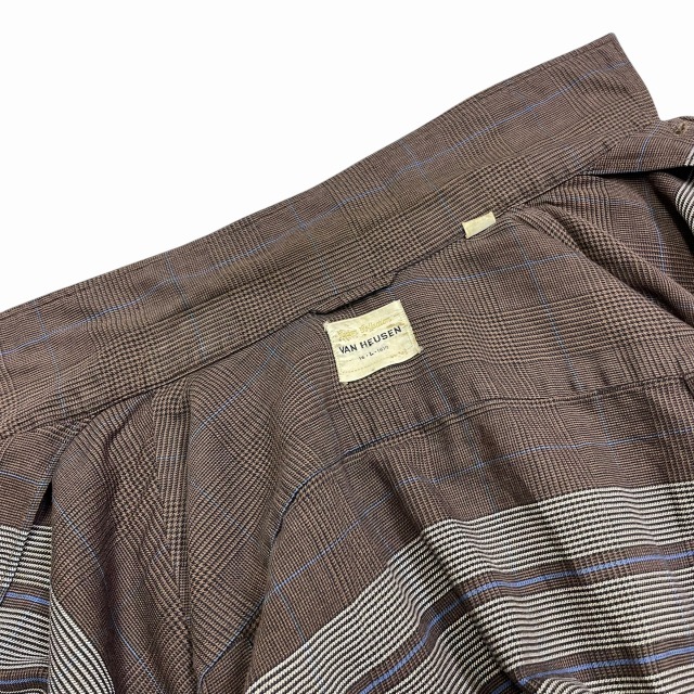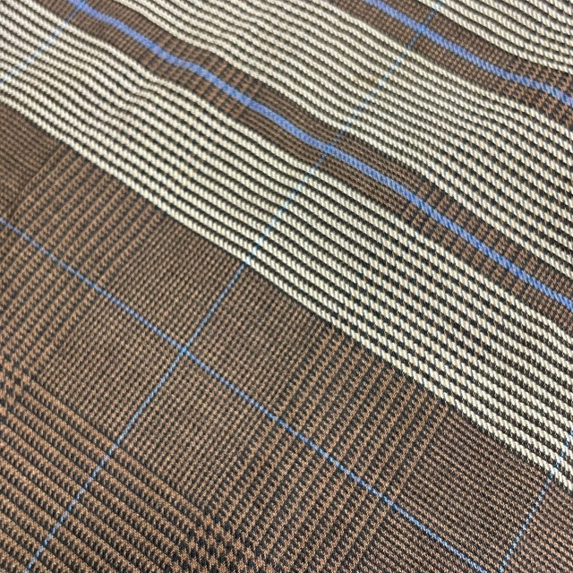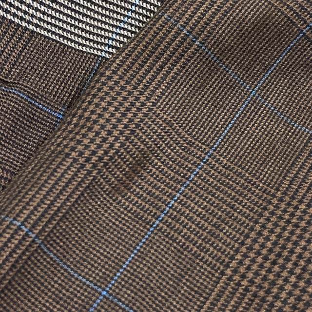 「ブラウン×ホワイト×ブルー、チェック柄、L」