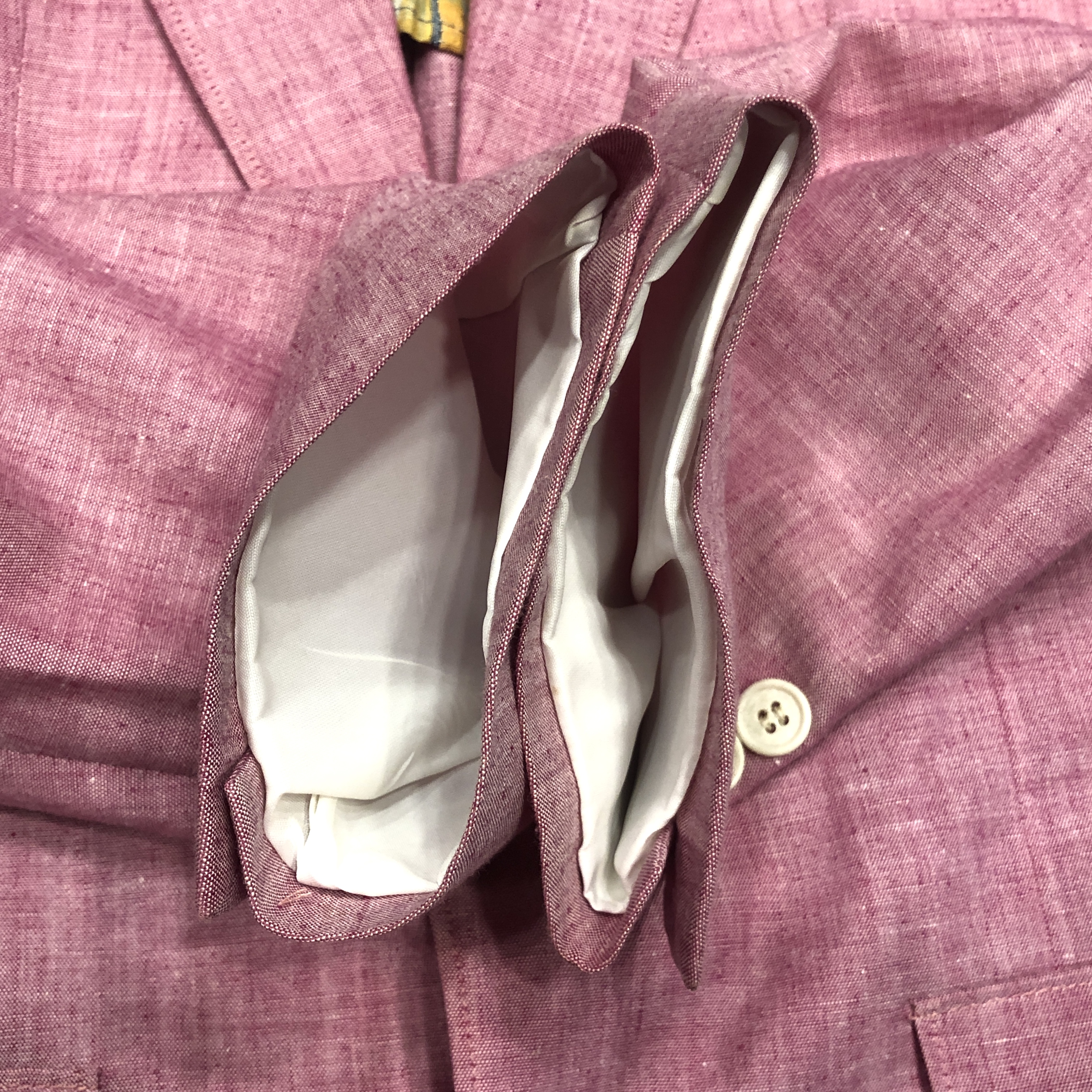 ジャケットを脱いだ瞬間に見えるこの裏地が非常に良いアクセントになっています。