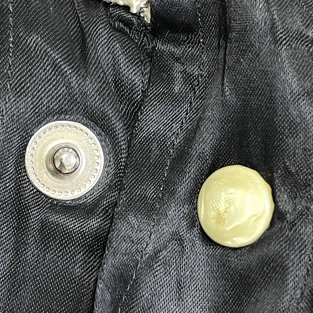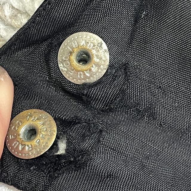 スナップボタン付け根の生地にダメージがあり、スナップボタンが取れそうな箇所がございます。
