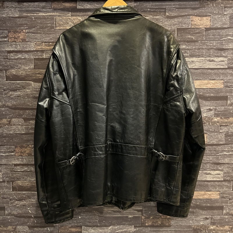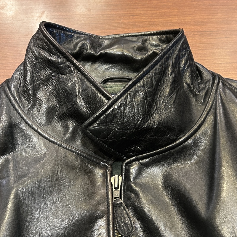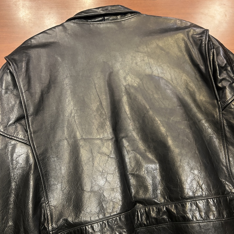 - 袖裏地にダメージや背中側の裏地に日焼けがございます。レザー特有の傷やシワ等の着用感がございますが、その他に目立つダメージ等は無く、古着慣れされた方でしたら問題無く着用していただける状態です。