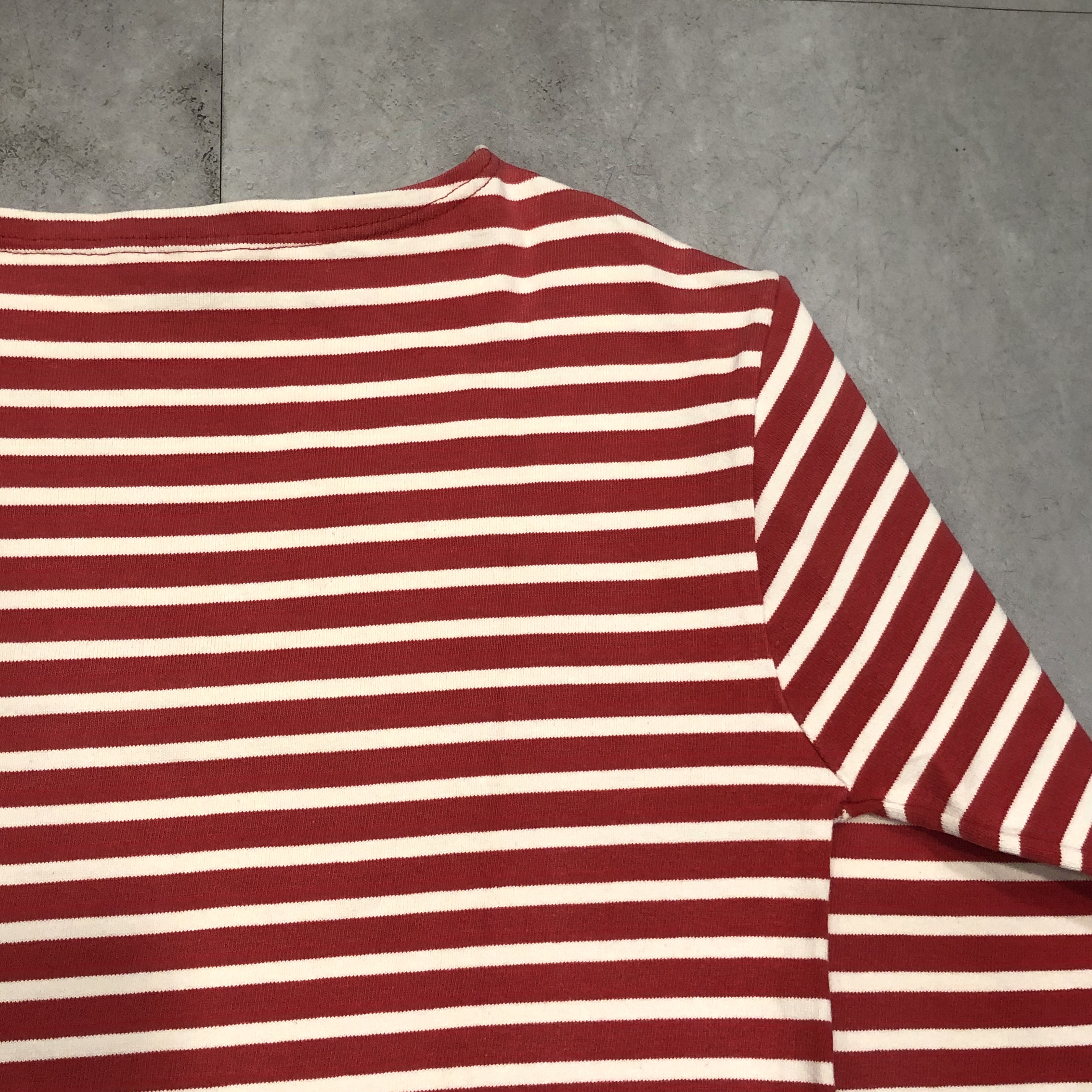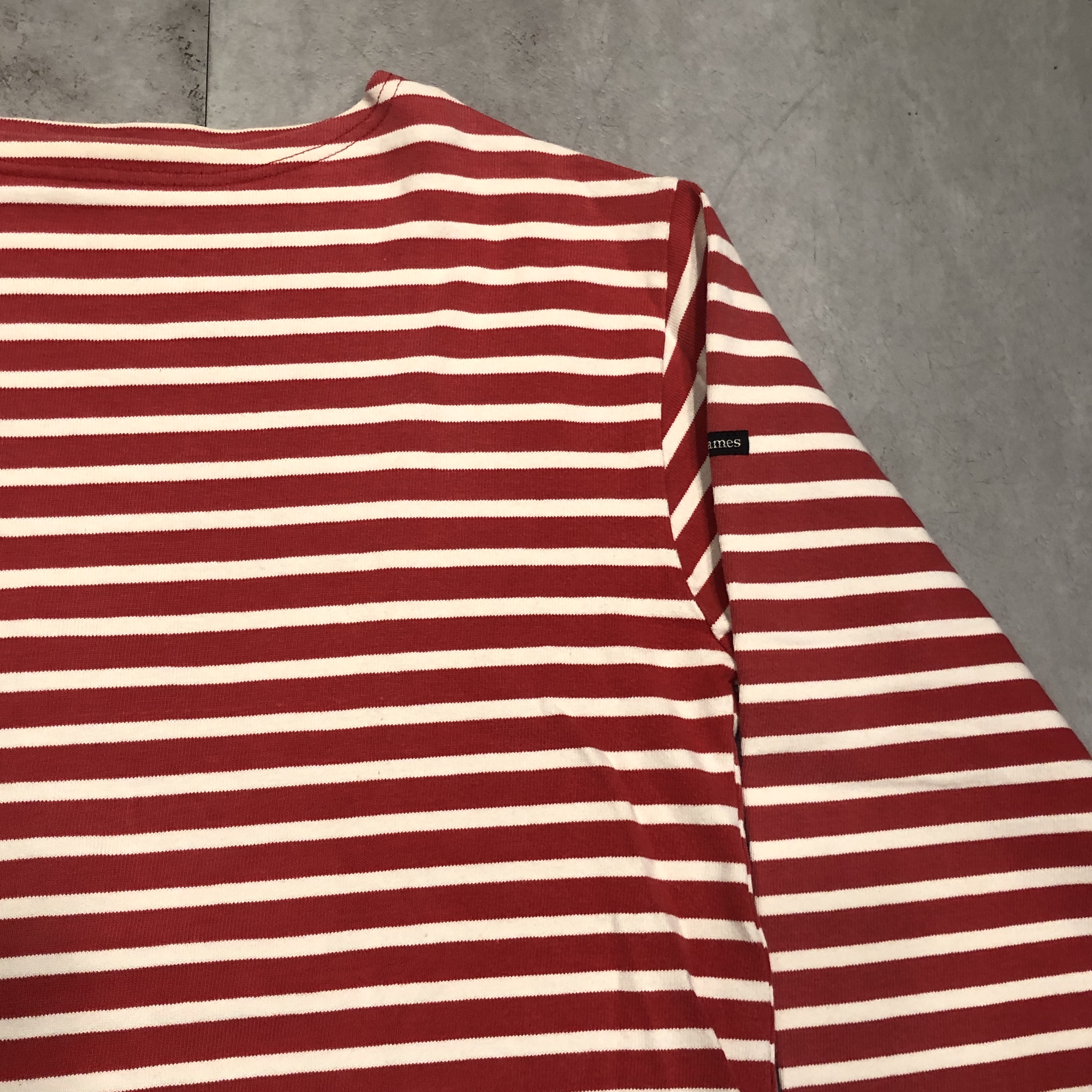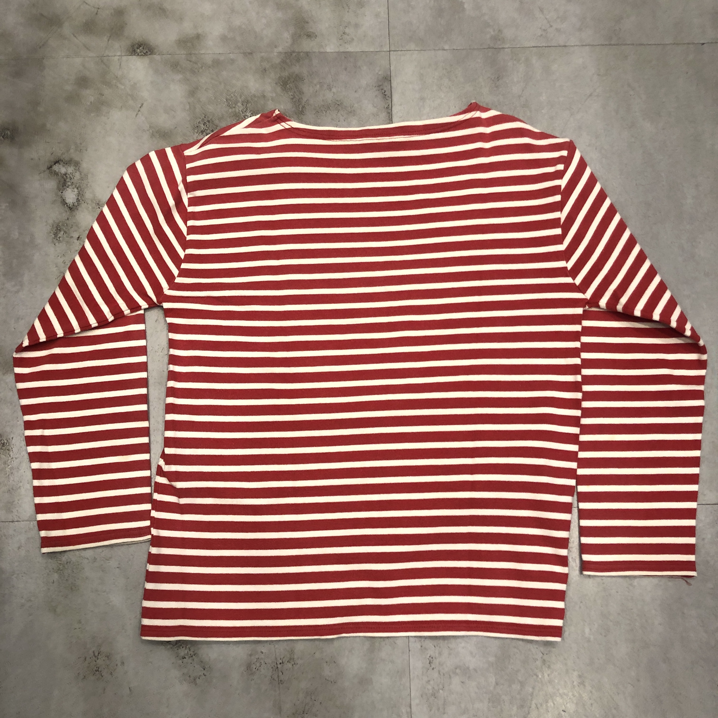 クラシックなボートネックと肩線の落ちたストレートなパターンは、重ね着にも最適。袖口にはブランド「StJames」のネームパッチを控えめに配置。製造はもちろんフランス自社工場で行われ、サイズはフランス表記6(国際サイズL)で、男女問わずゆとりあるシルエットを楽しめます。