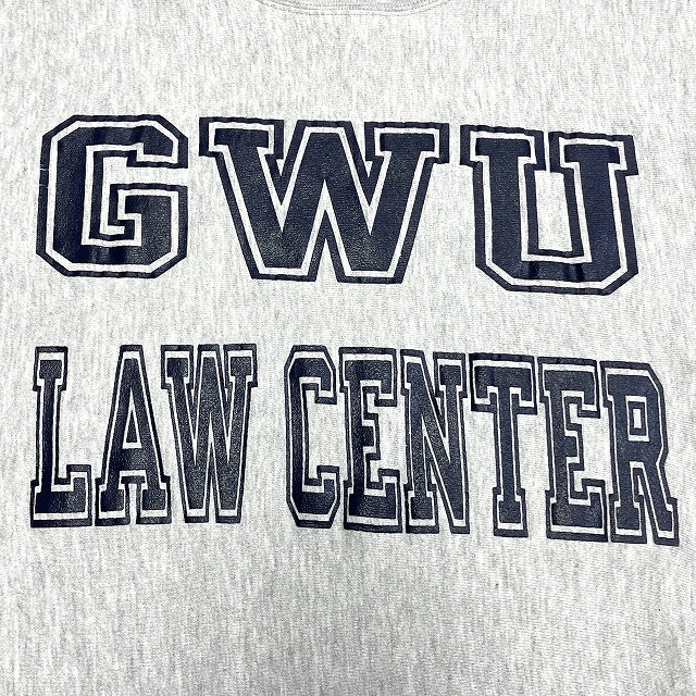 「USA製、GWU LAW CENTER、グレー×ネイビー、XL」