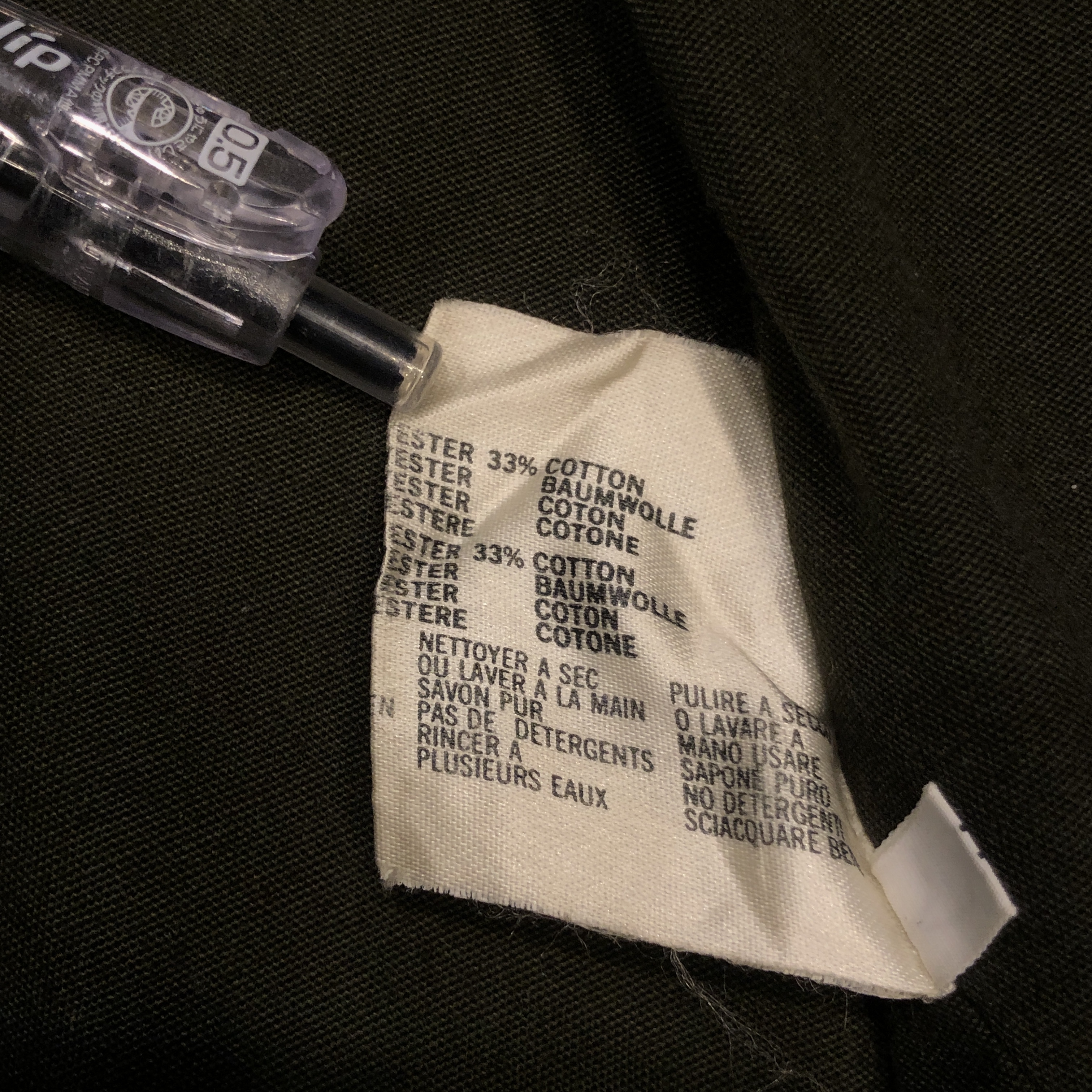 素材にはポリエステル67% コットン33%を採用。
