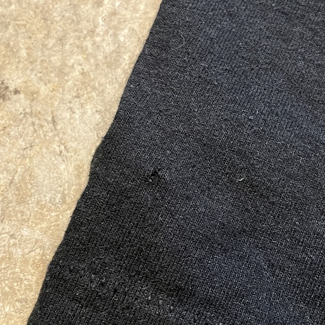 - ボディ側面に若干のヤケ、正面左下裾付近に小穴がみられます。その他、スレ、アタリ等の着用感ございますが、ユーズド慣れされた方でしたら、まだまだ問題なく着用していただけます。