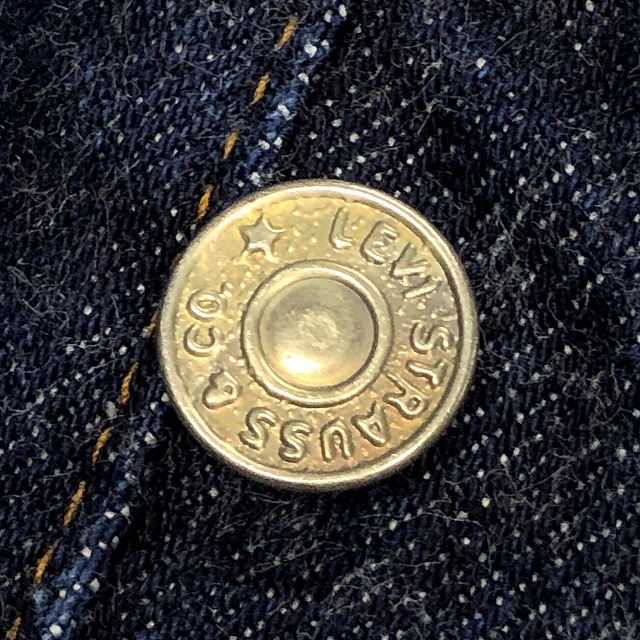 - トップボタン裏刻印『6』、不均等V、平行ステッチ