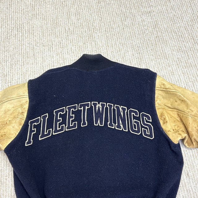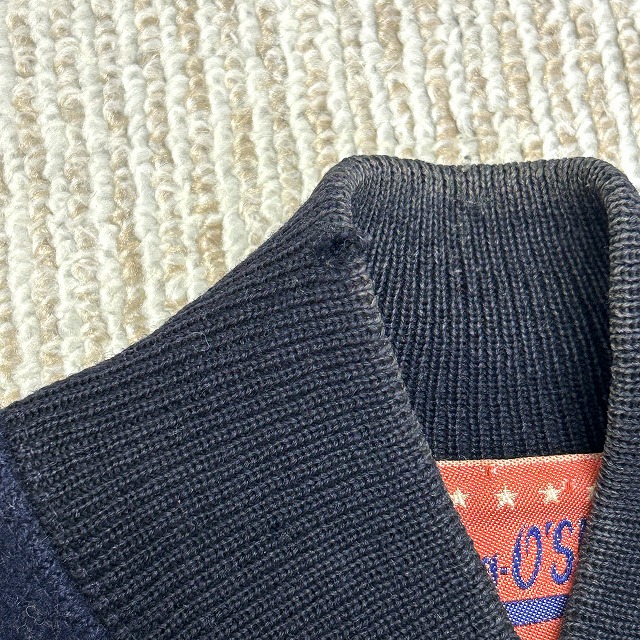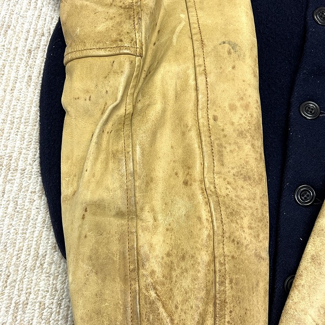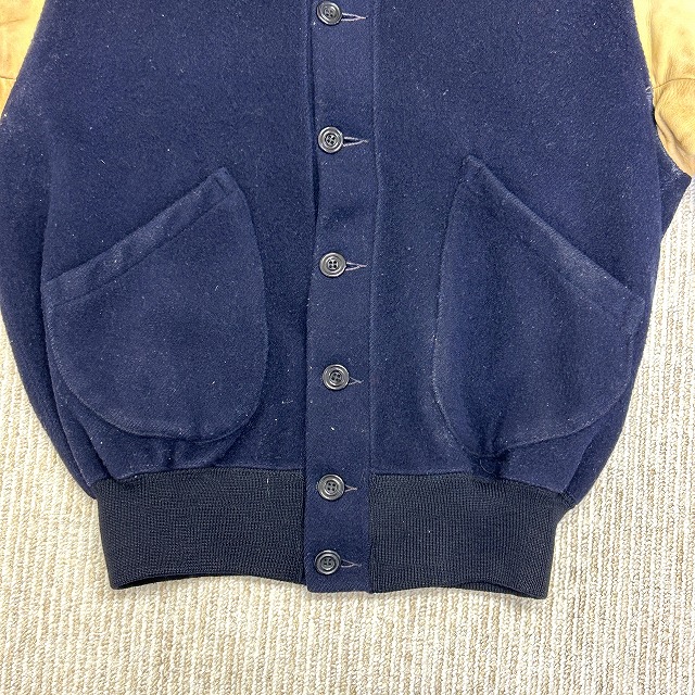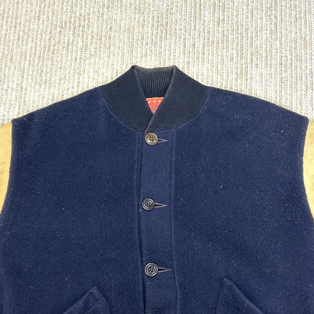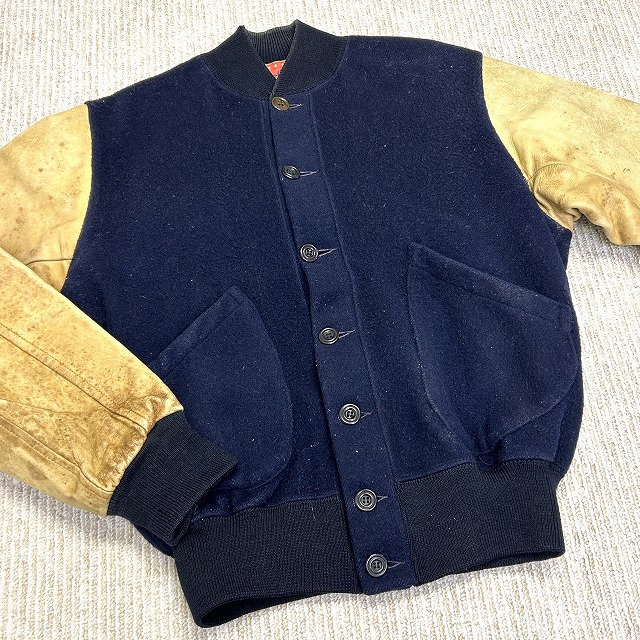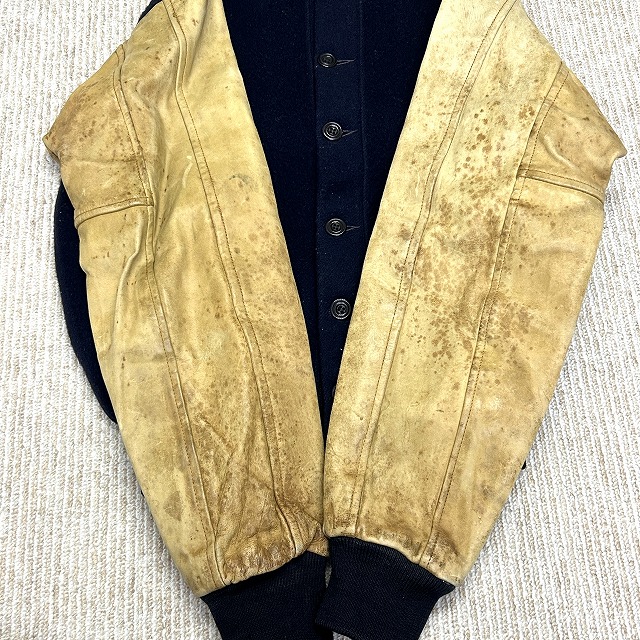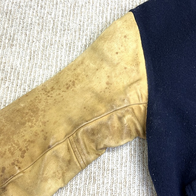 ウール×袖レザー、ボタン仕様のスタジャン。