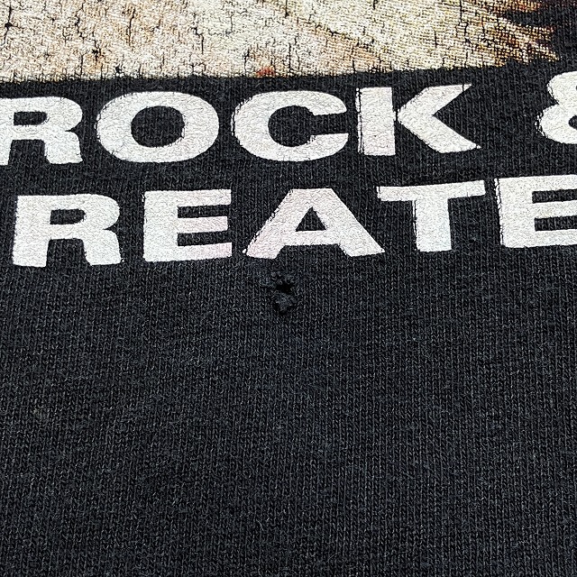 - 所々に薄汚れがみられます。また、右肩や正面プリント下に小穴がみられます。その他、スレ、アタリ等の年代相応の着用感ございますが、ユーズド慣れされた方でしたら、まだまだ問題なく着用していただけます。