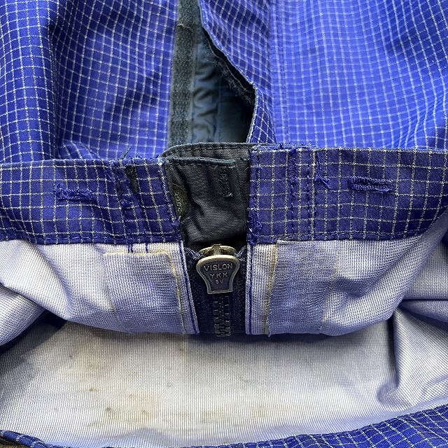 - 所々にシームテープの剥がれ、サスペンダーの伸びがみられます。また、裾付近や裾内側に薄汚れがみられます。その他、スレ、アタリ等の年代相応の着用感がみられ、ユーズド慣れされた方におすすめの商品です。