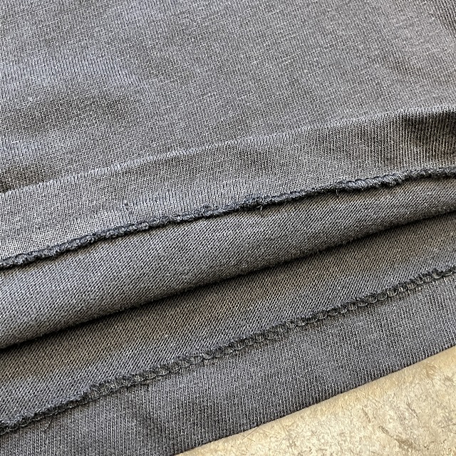 - 襟リブ付近や肩付近に小穴、ダメージがみられます。また、裾にステッチ抜けがみられます。その他、薄汚れ等の年代相応の着用感ございますが、ユーズド慣れされた方でしたら、まだまだ着用していただけます。