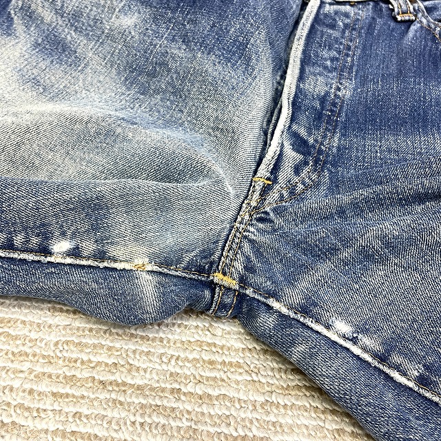 - 画像のように、汚れ、キズ、ステッチ抜け、アタリがあり、右膝付近とヒップ等にリペアがございます。