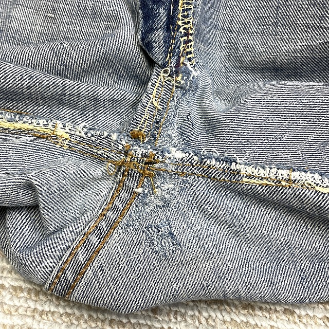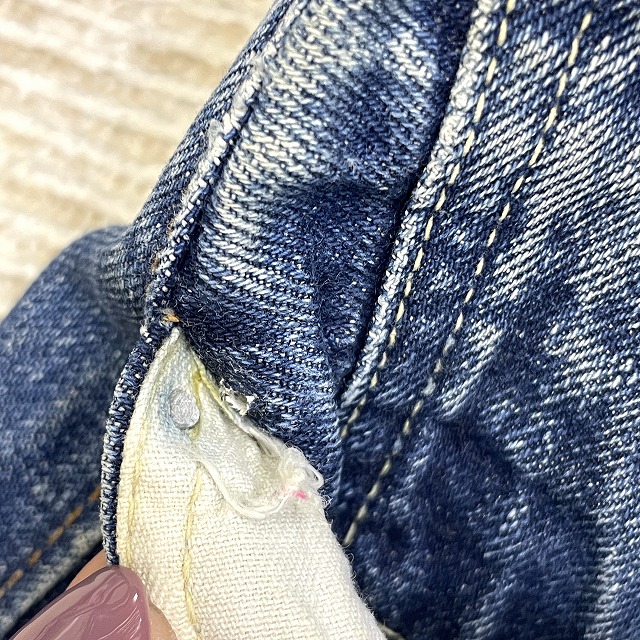 前右ポケットのリベットが取れかけており、裏側のリベット受けが多数欠損しております。