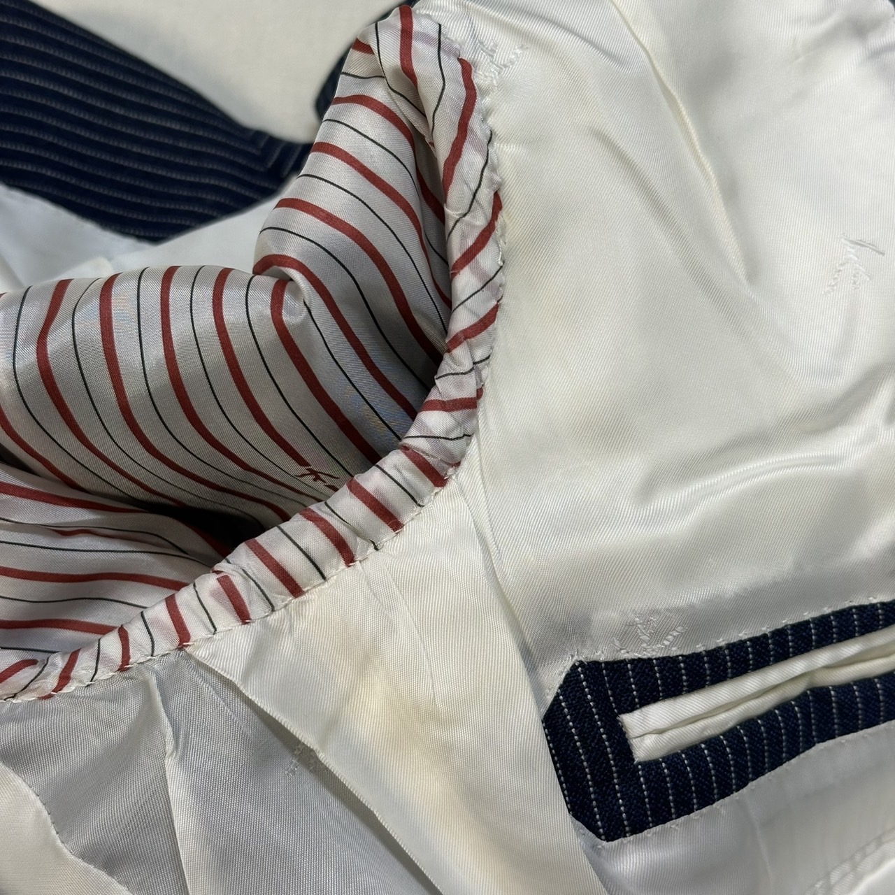 - ジャケット裏地首元、脇下、内タグの薄シミございますが、目立つダメージ等はございません。