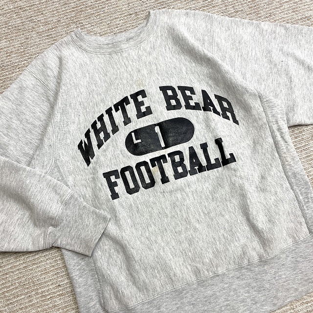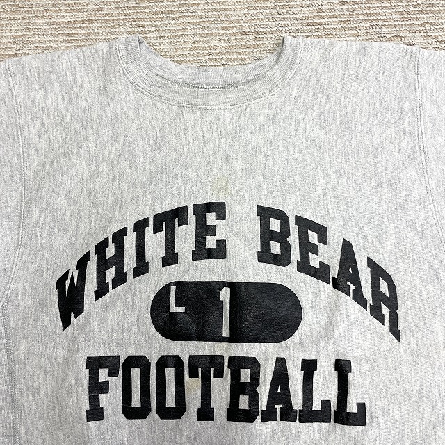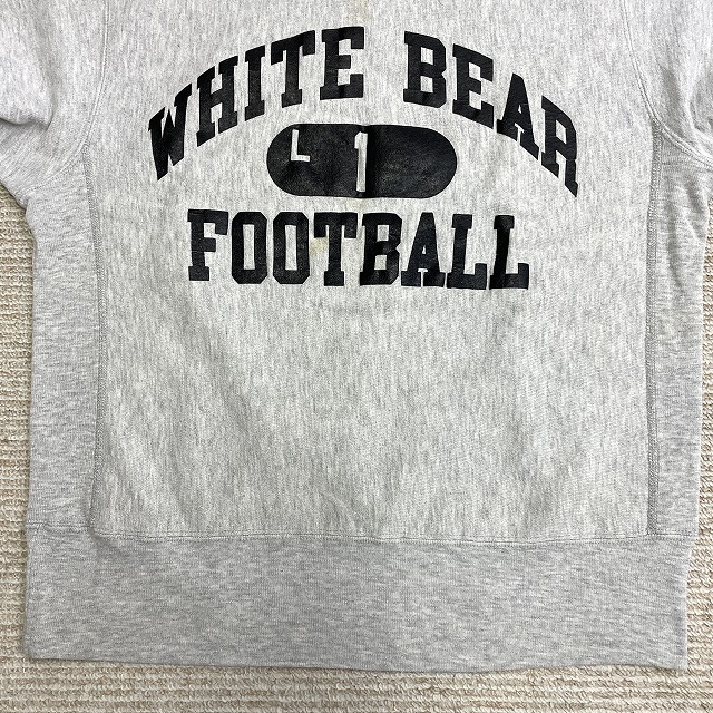 「USA製、3段ラバープリント、WHITE BEAR FOOTBALL、グレー×ブラック」