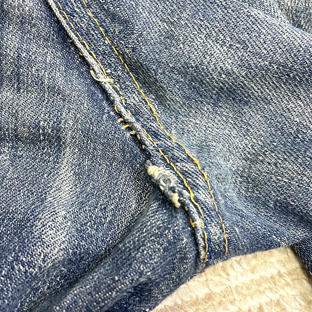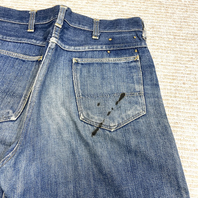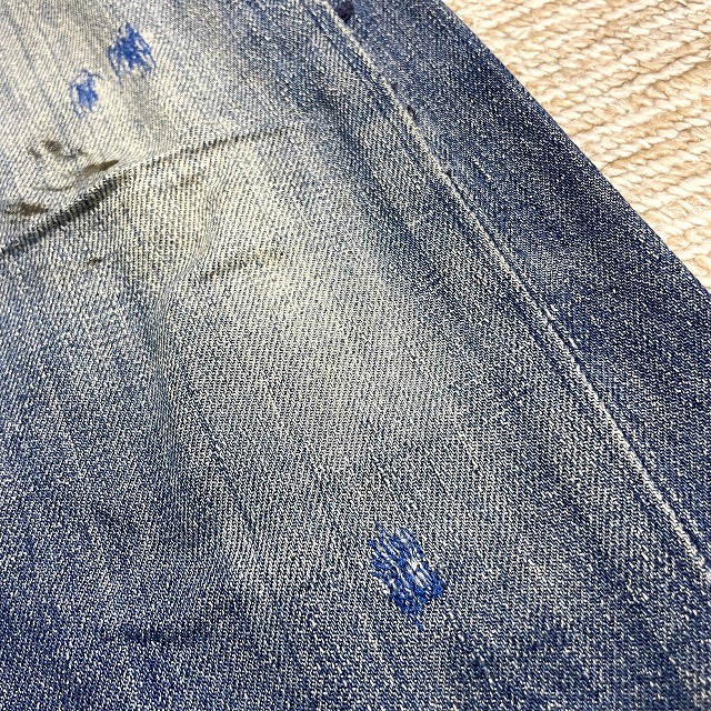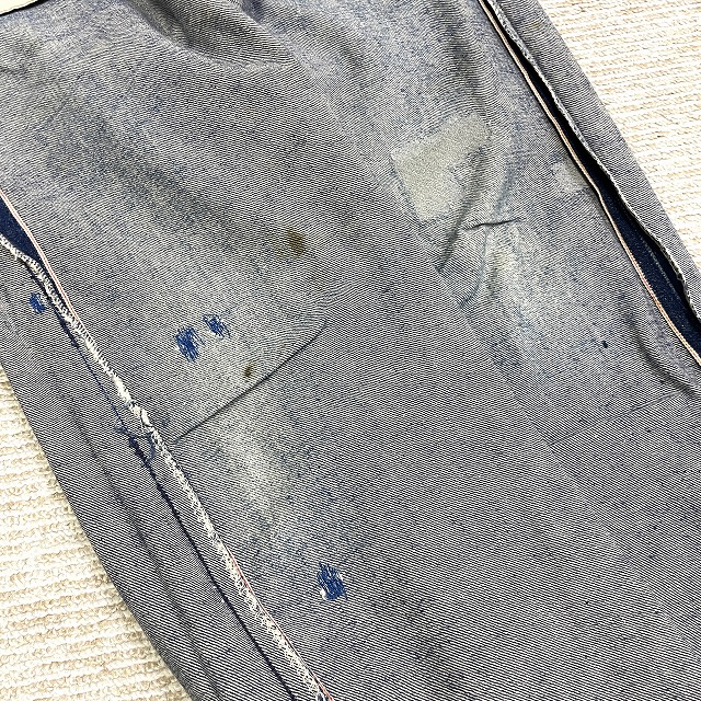 - 画像のように、汚れ、キズ、スレ、ステッチ抜けがあり、両膝付近等にリペアがございます。