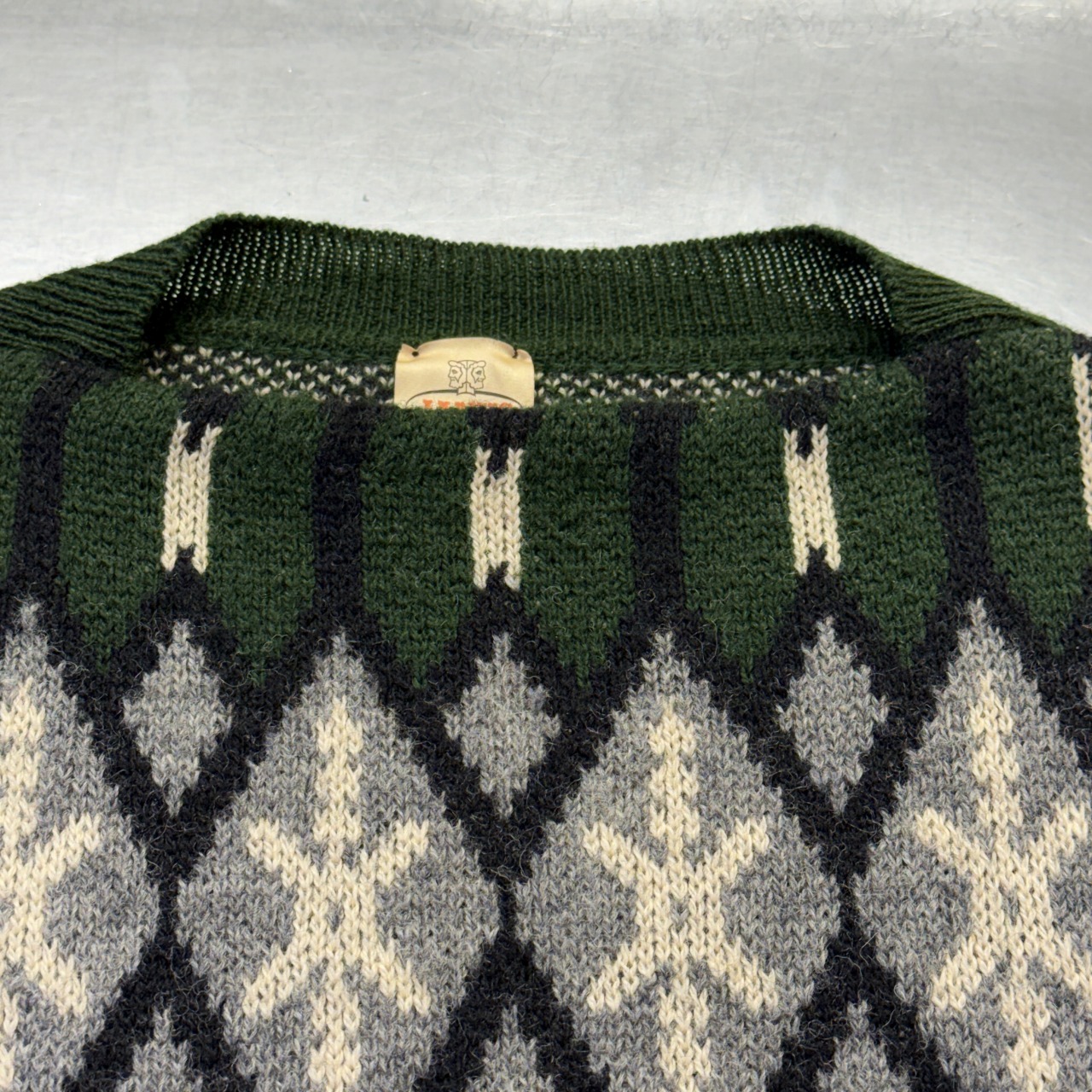 幾何学模様の総柄ニット
