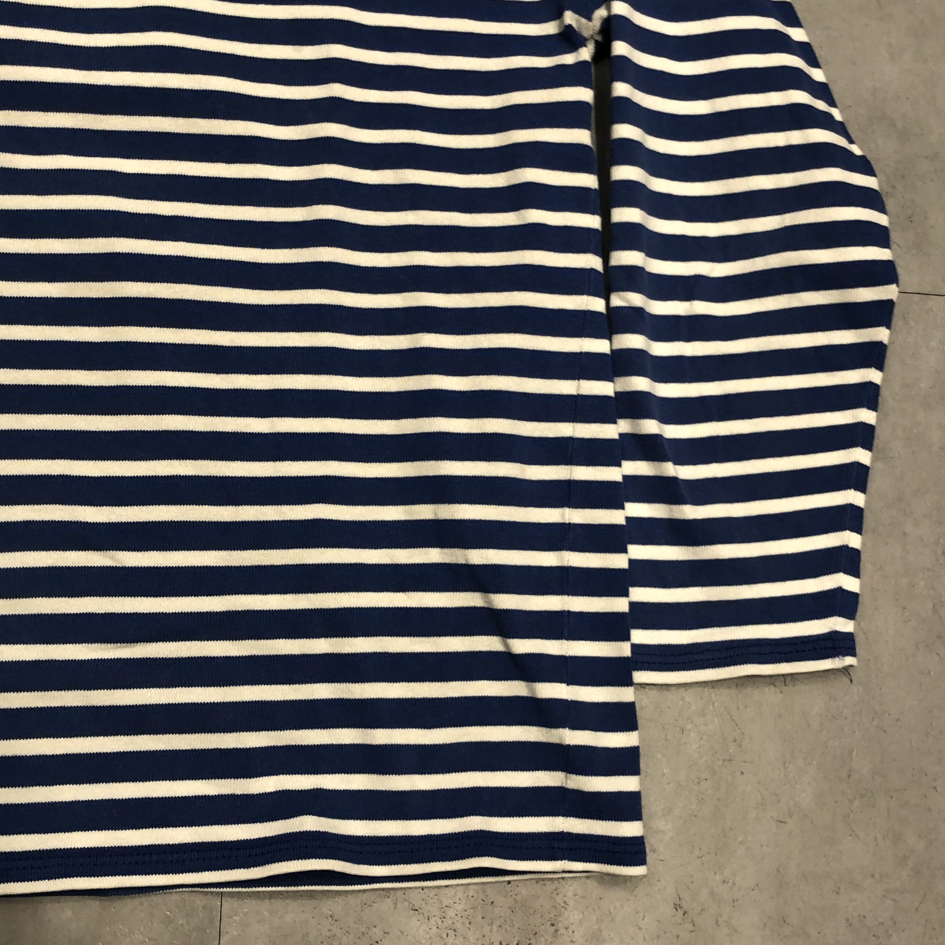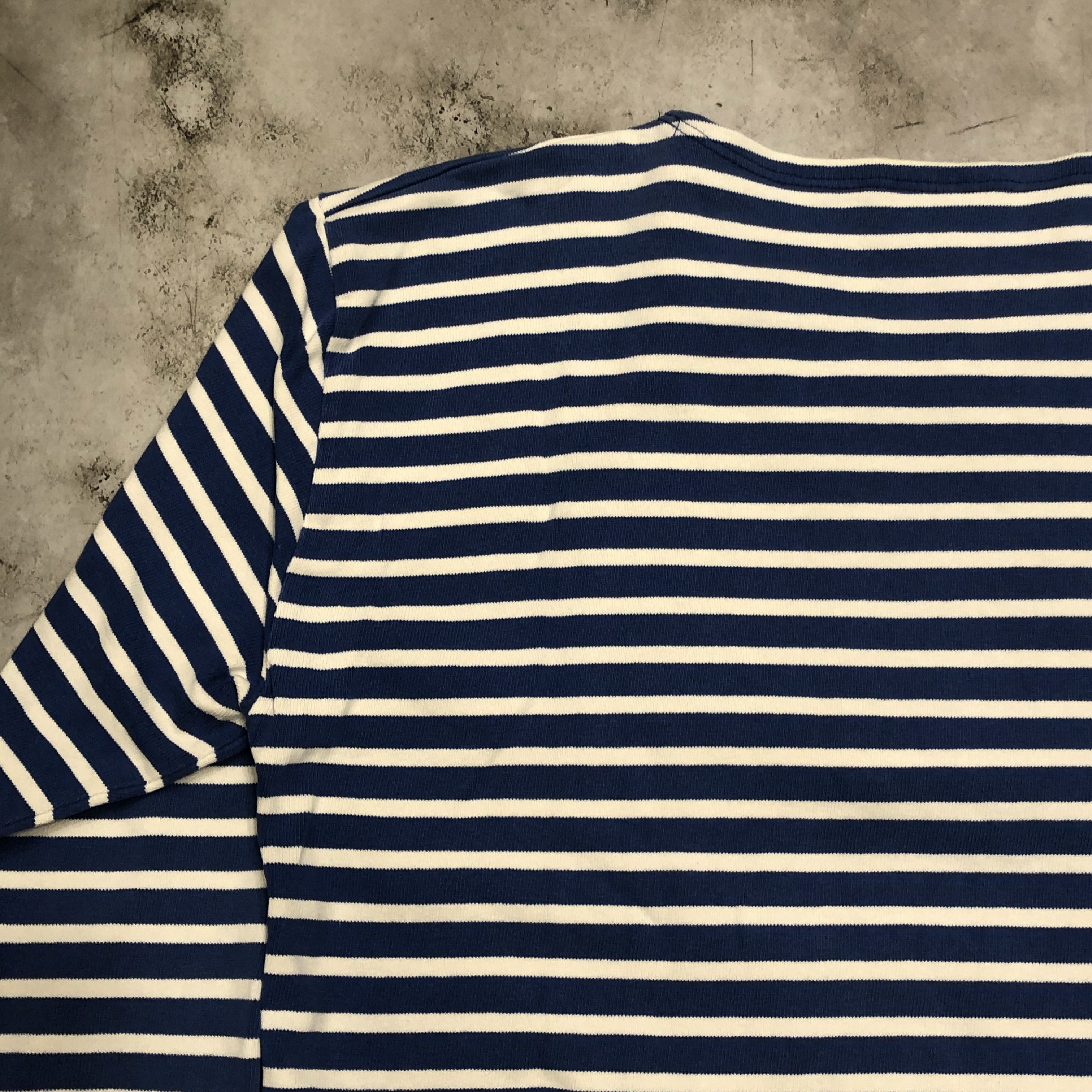 クラシックなボートネックと肩線の落ちたストレートなパターンは、重ね着にも最適。袖口にはブランドのネームパッチを控えめに配置。製造はもちろんフランス自社工場で行われています。