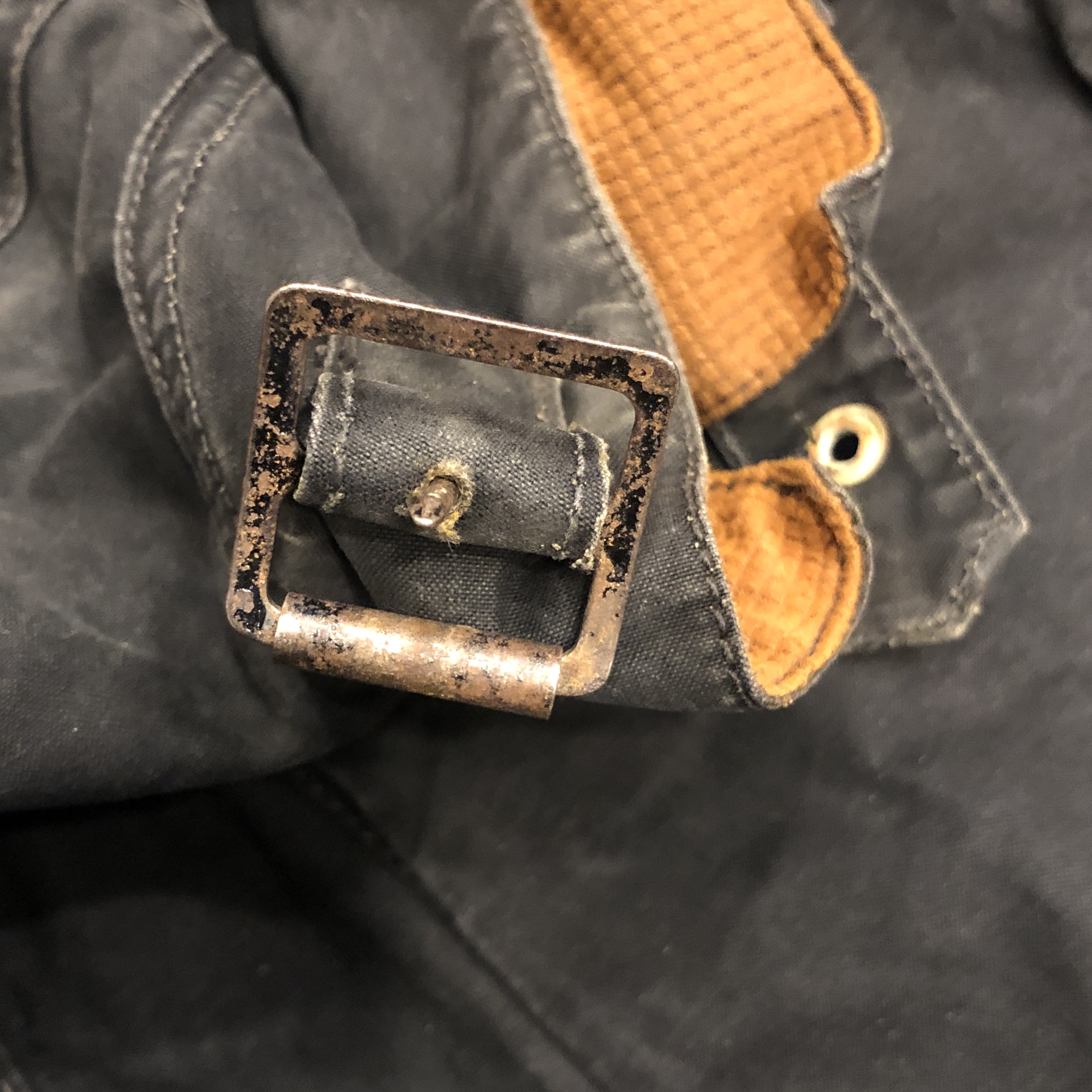 - オイルド生地特有のアタリ、スレ、内側裾部分と襟部分、左ポケットのダメージがそれぞれ画像の様にございますが、ヴィンテージ慣れされた方でしたら問題なく着用していただける範囲です。