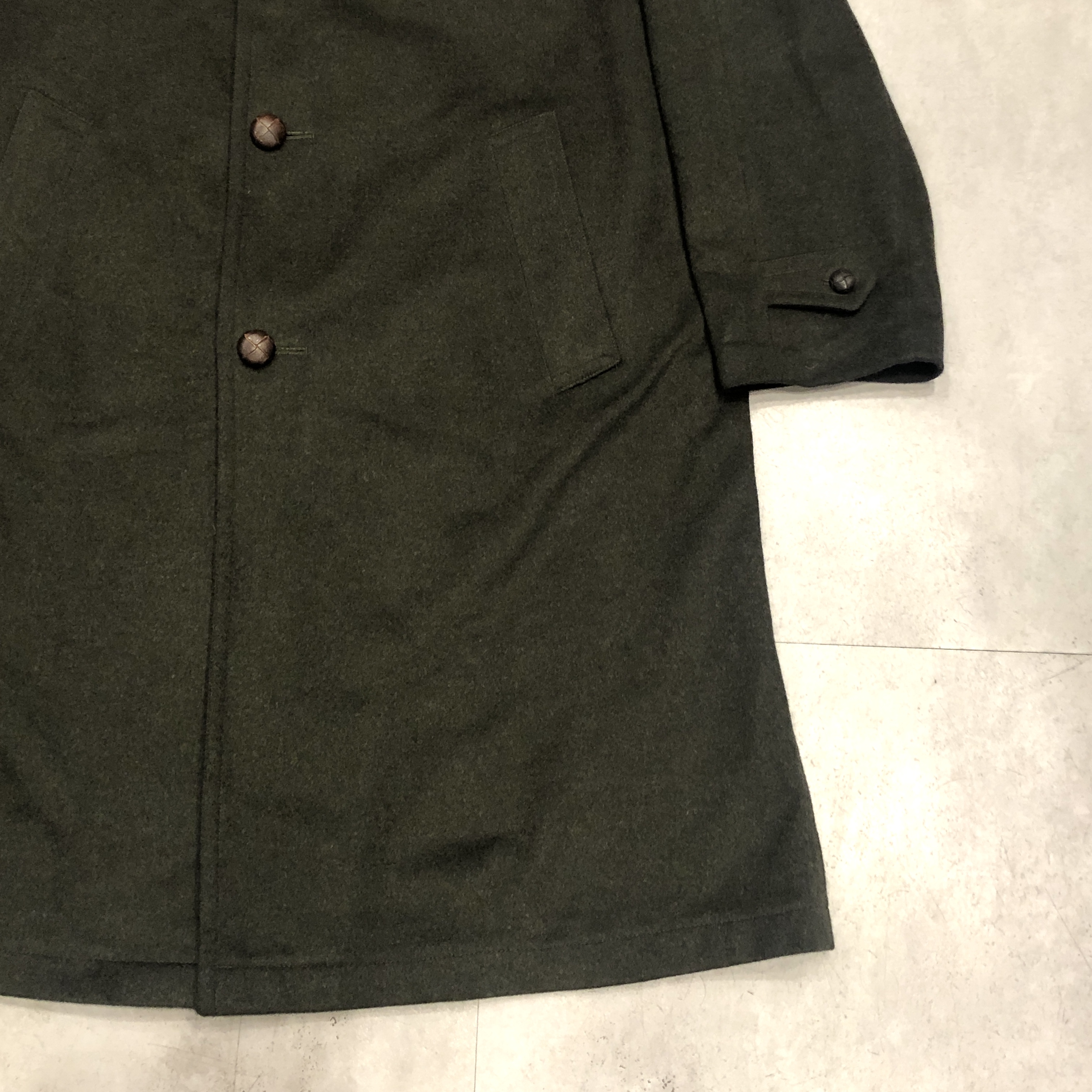 ※弊社の取扱商品は基本的には中古品の為、写真に写しきれない細かな汚れや、細かな擦れやアタリ等は全てを記載しきれない場合がございます。また撮影環境により、実際の色味に若干の誤差が生じる場合がございます。±2.5cm以内の採寸誤差、イメージの相違や細かなダメージの有無等による返品、返金、交換等は一切承れませんのでご了承下さい。ヴィンテージ、古着にご理解のある方のみご購入ください。