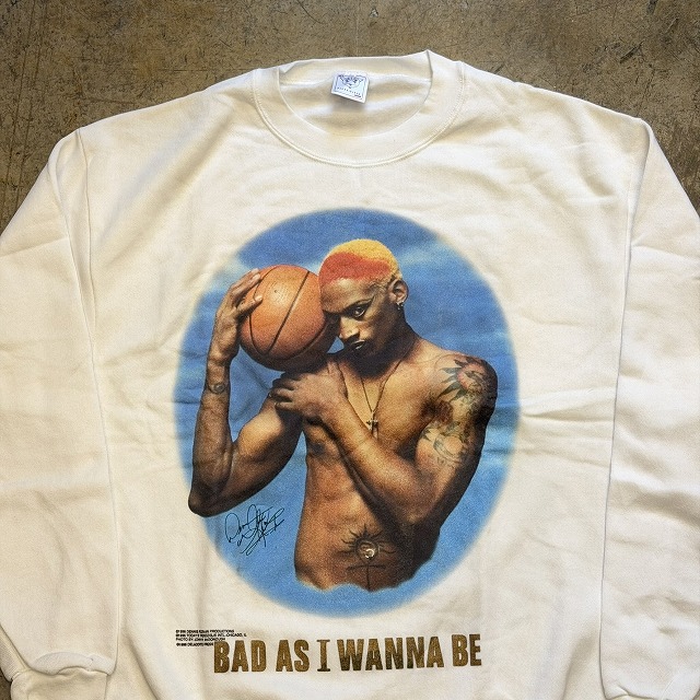 - デニス・ロッドマンの自伝”BAD AS I WANNA BE”のデニス・ロッドマン本人がプリントされたスウェット!