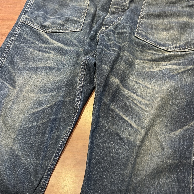 - 元々ユーズド加工が施されております。デニム特有の色落ちやアタリ等の着用感がございますが、その他に目立つ汚れやダメージ等は無く、古着慣れされた方でしたら問題無く着用していただける状態です。