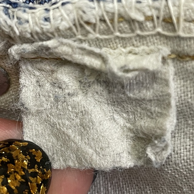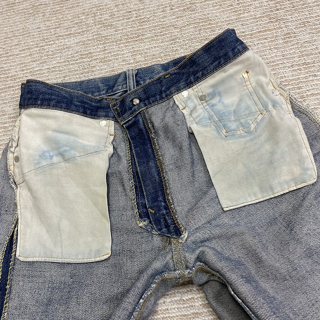 - 画像のように、薄汚れ、擦れ、キズがあり、ポケット裏側のリベット受けが欠損しております。