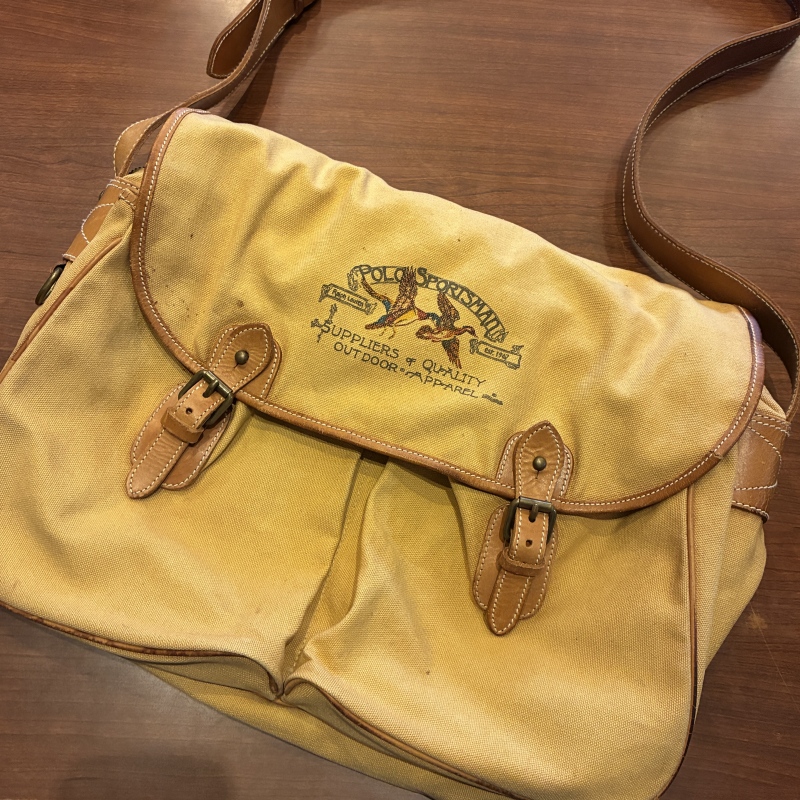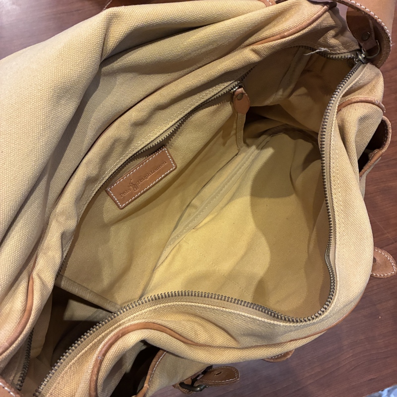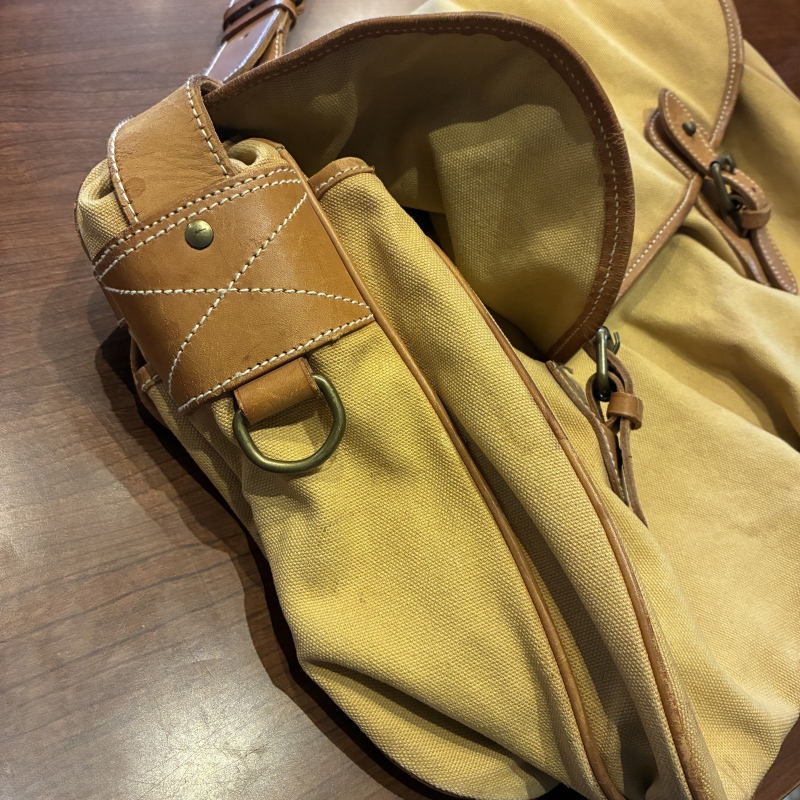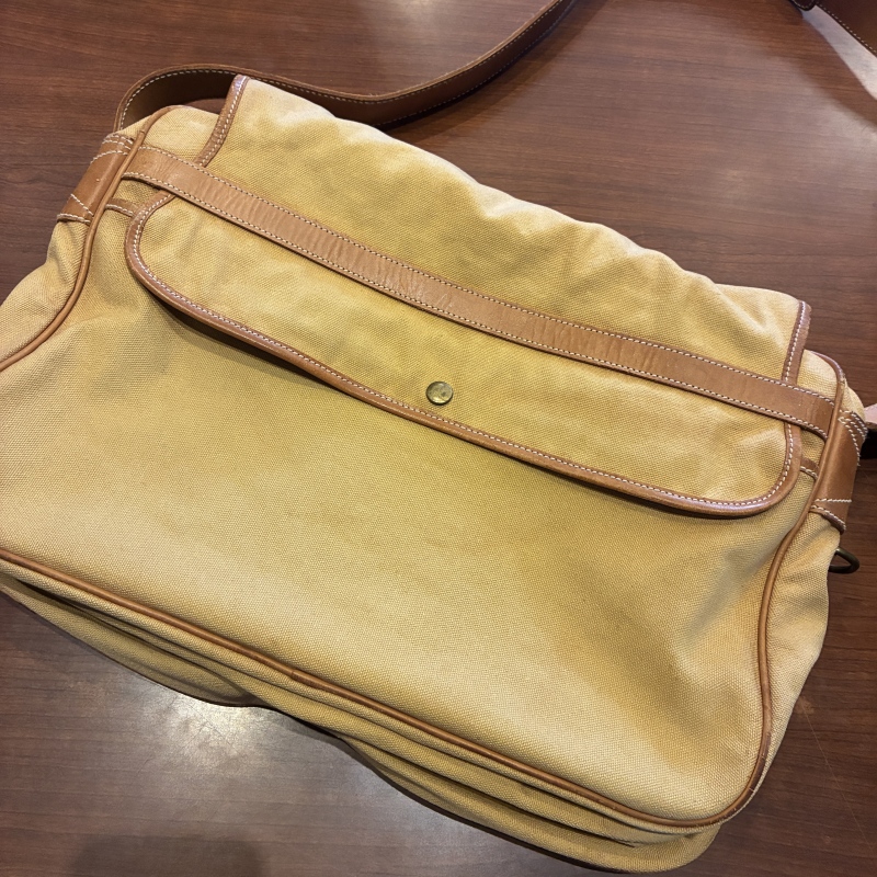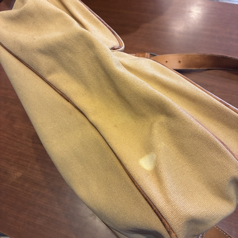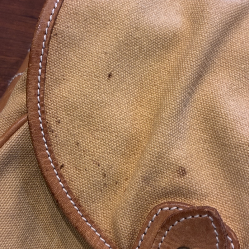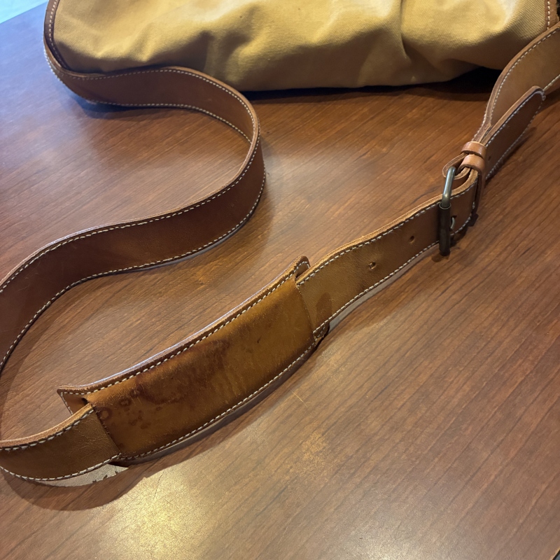 - 画像の様にレザー部分に劣化や割れとキャンバス部分に細かな汚れ、ストラップ部分のパーツが一部交換されております。(画像15枚目)