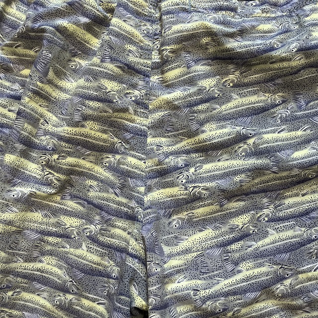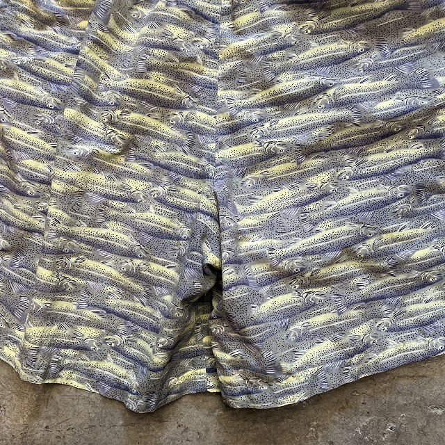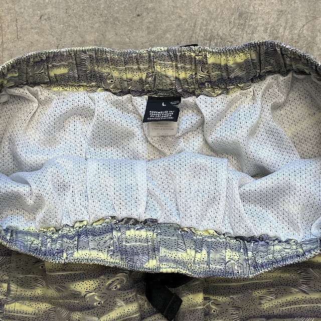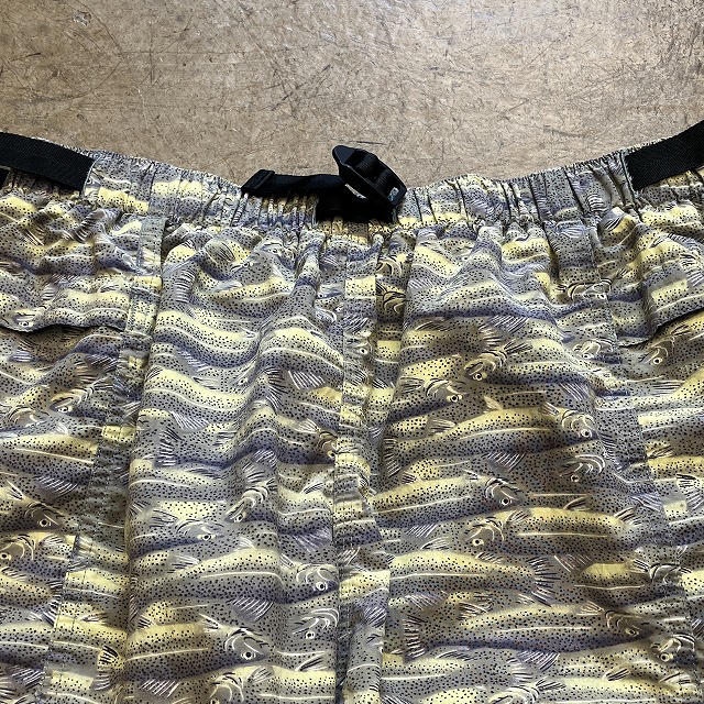 トラウト柄のリバーショーツです。よく見ると派手な印象ですが色味は落ち着いてるので不思議と合わせやすい一本です。ゴムもピンピンのグッドコンディション!勿論、水陸両用です◎