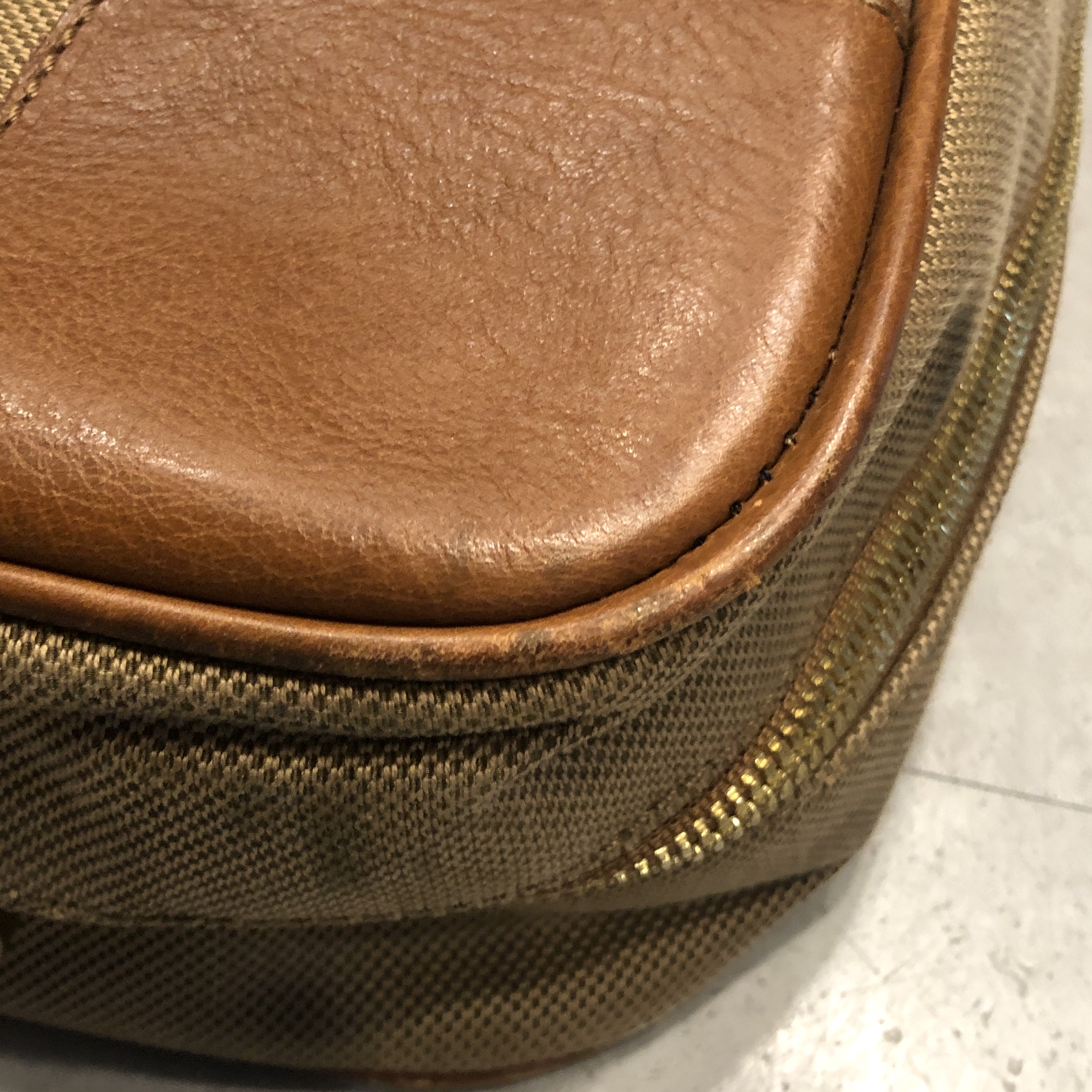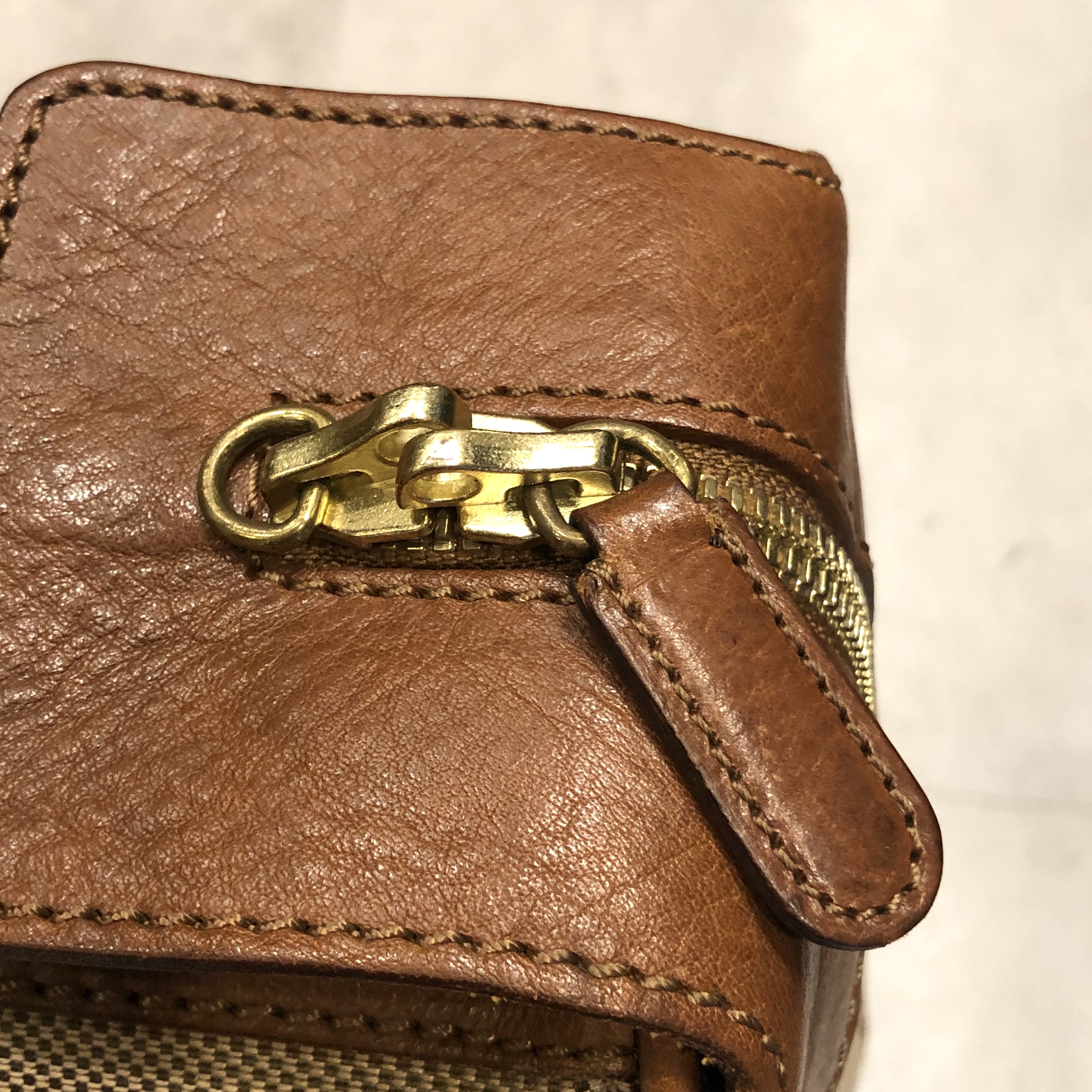 - 年代相応の使用感、側面下方のスレ汚れが画像の様にございますが、古着慣れされている方でしたら問題なくお使いいただける範囲です。ジッパーの引き手レザーが1つ画像の様に欠損しております。