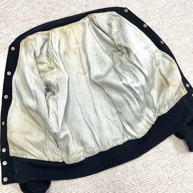- 画像のように、数か所に虫食いのようなキズがあり、裏地やポケット内布に汚れがございます。