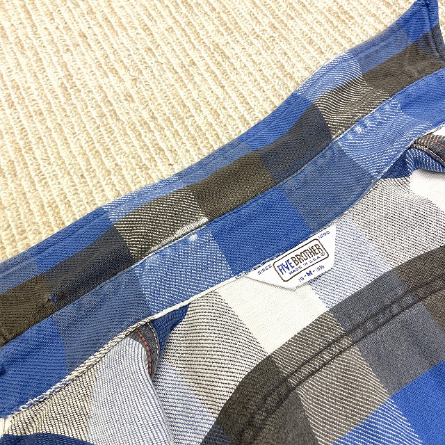 「ブルー×グレー×ホワイトチェック、サイズM」