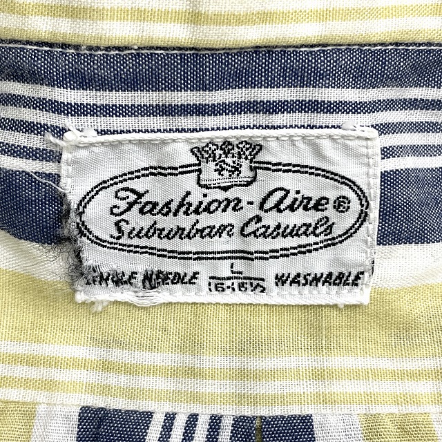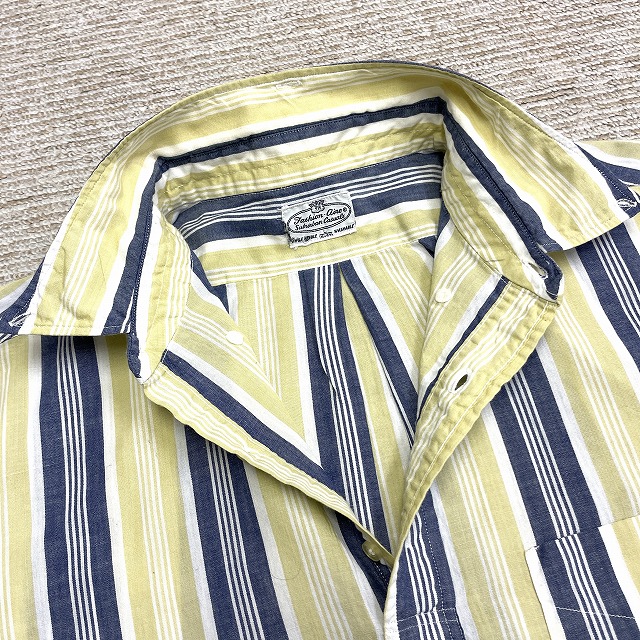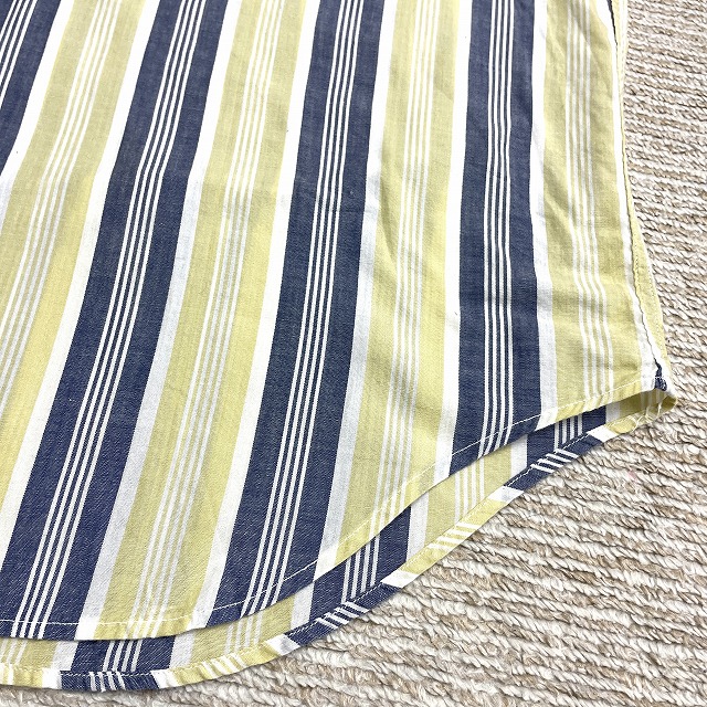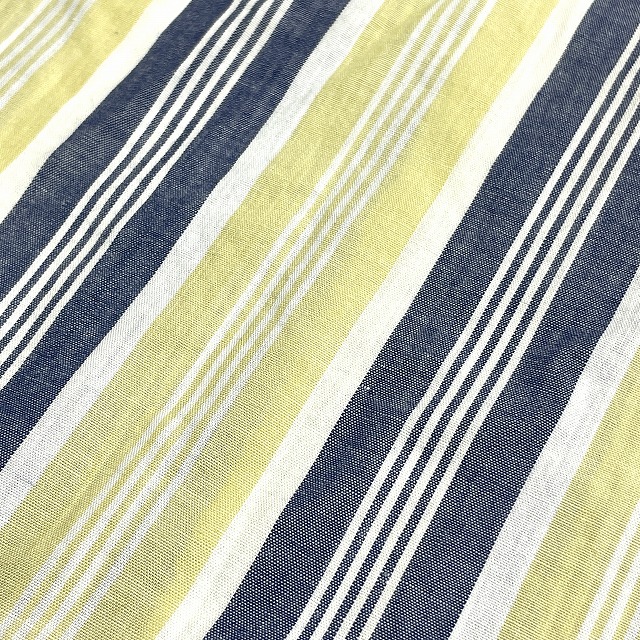 「ストライプ柄、3点留め、イエロー×ネイビー×ホワイト、サイズL」