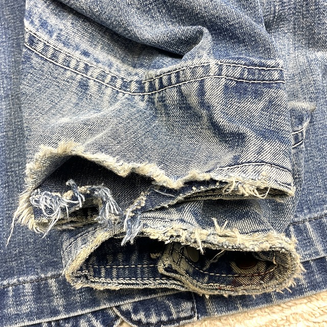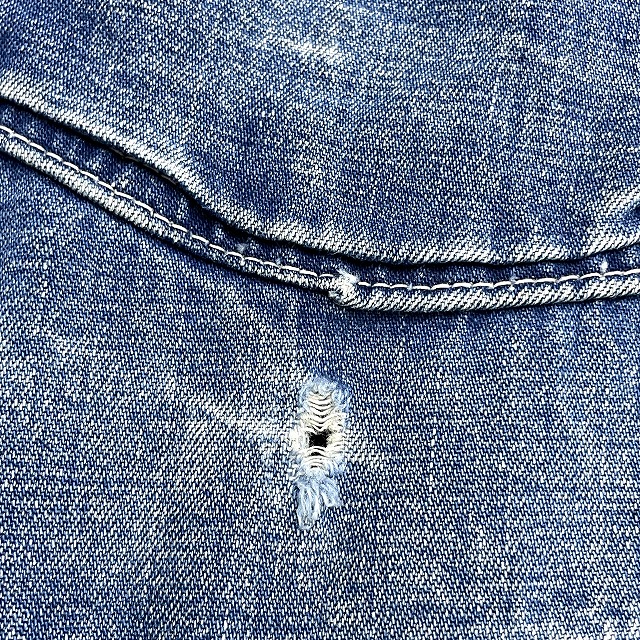 - 画像のように、キズ、スレ、アタリ、ステッチ抜け、汚れがあり、襟や袖口にスレに伴う破れがございます。